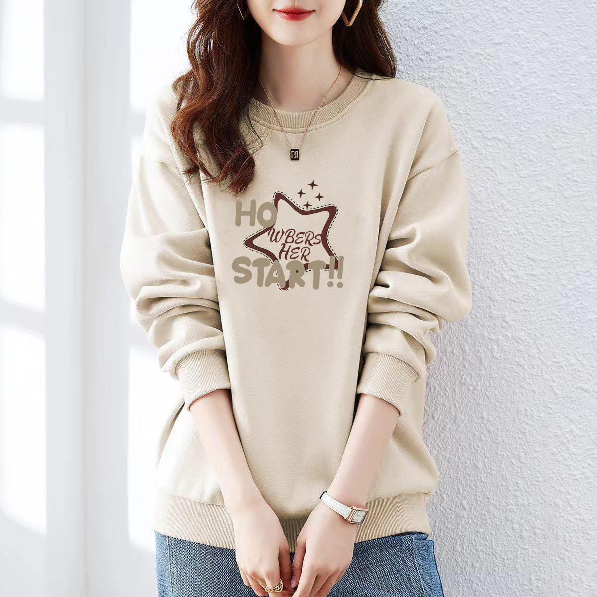 淘宝高端中山即墨洋气卫衣女春秋宽松显瘦慵懒风薄款时尚印花纯棉上衣