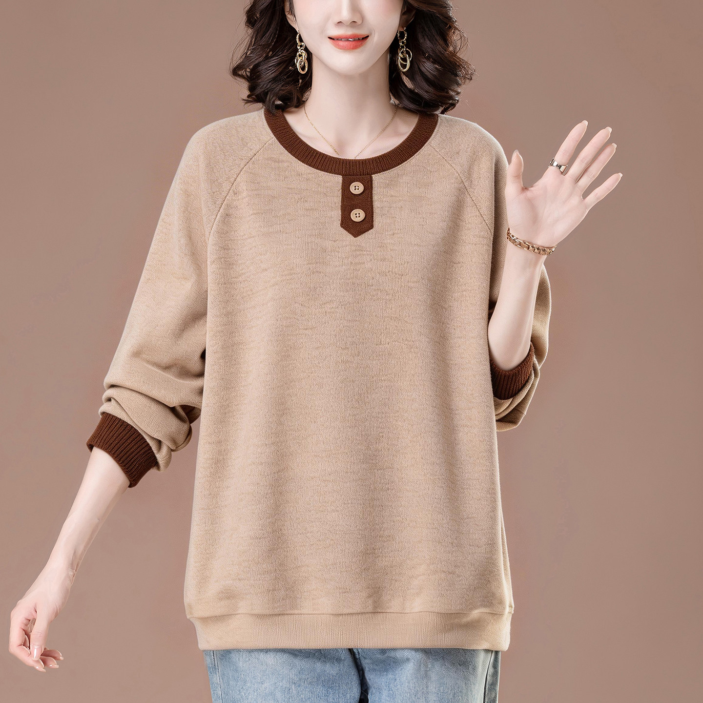 这款春季新款女式卫衣专为中老年妈妈设计,采用宽松加肥加大码版型,穿着舒适自在,轻松包容各种身形。精选柔软亲肤的毛绒感面料,轻盈保暖,春日穿着温暖又透气。时尚的撞色拼接设计,打破单调,增添视觉层次,彰显活力与优雅。立体剪裁巧妙修饰身材,显瘦效果显著,轻松穿出自信风采。无论是居家休闲还是外出散步,都能展现从容气质。多色可选,百搭实穿,是送给妈妈贴心又实用的春日好礼,兼顾舒适与美感,让妈妈穿得舒心,更穿得漂亮。