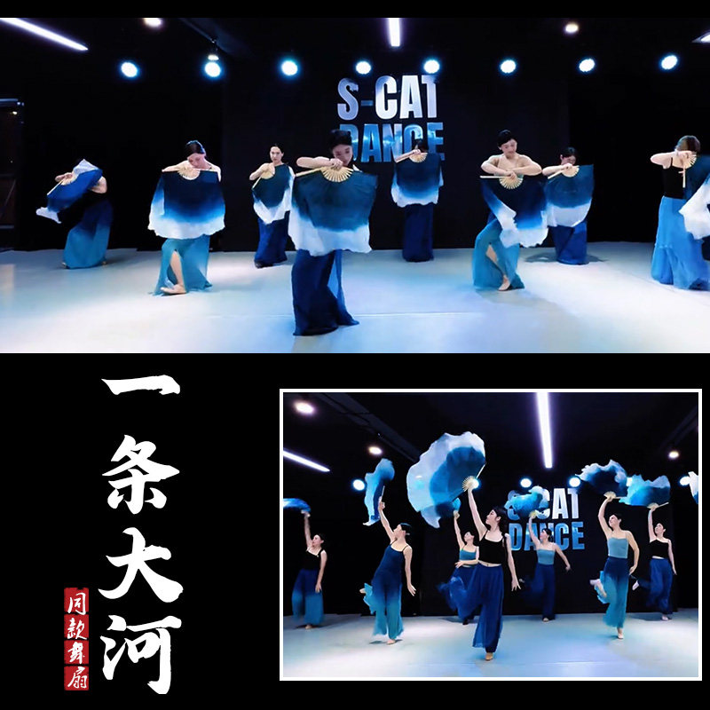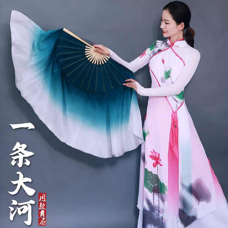 淘宝一条大河真丝舞蹈扇子跳舞扇双面墨兰渐变成人广场舞专用绸扇