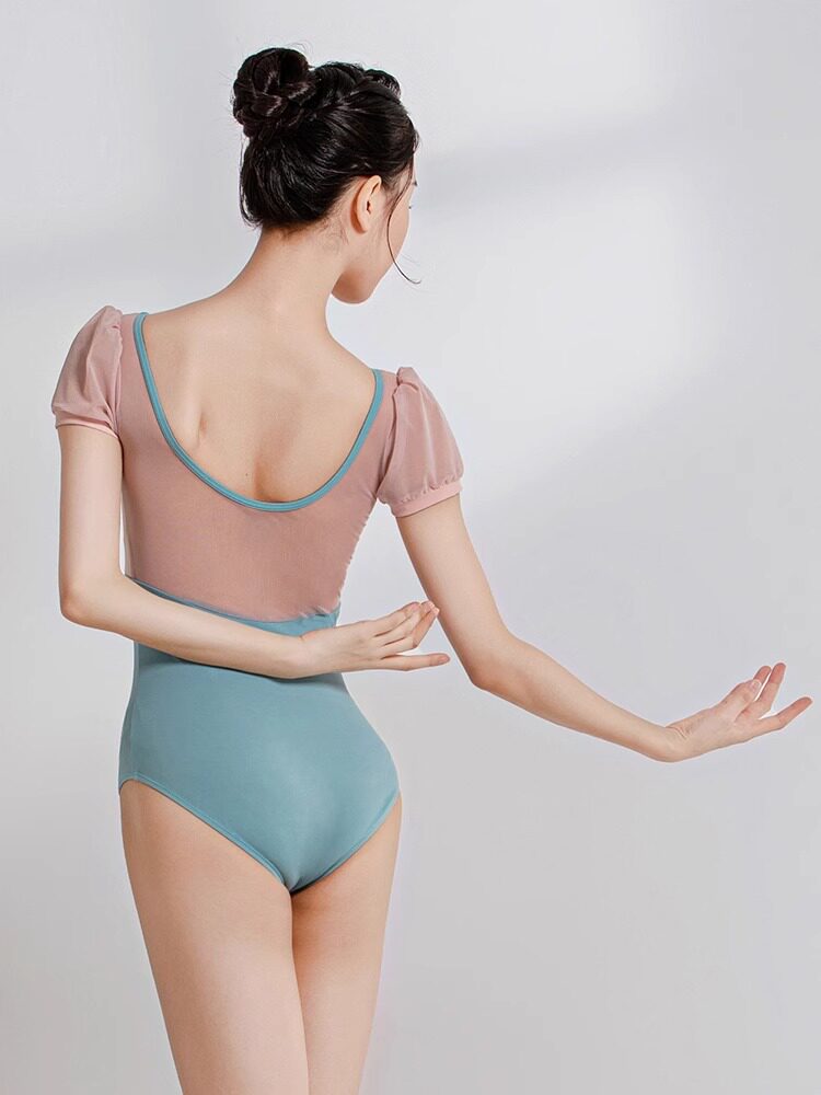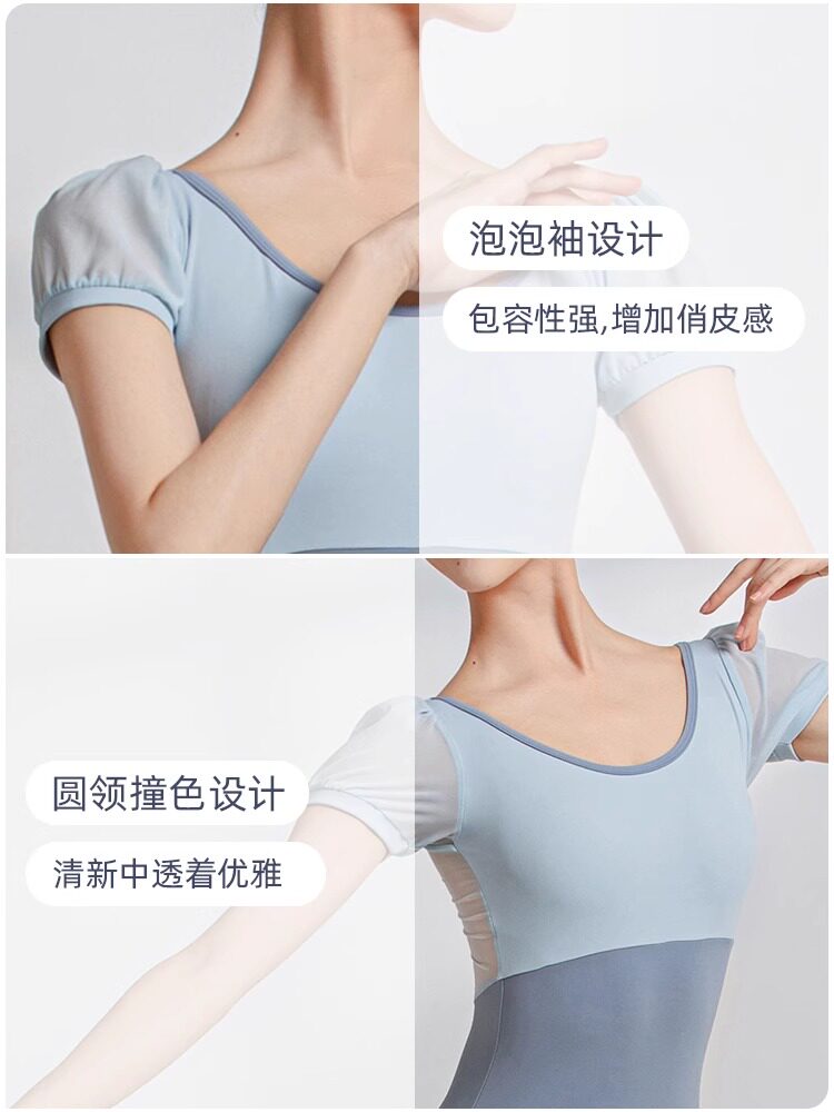 淘宝sansha/三沙舞蹈服女 短袖大圆领连体服芭蕾舞练功服形体服网纱裙
