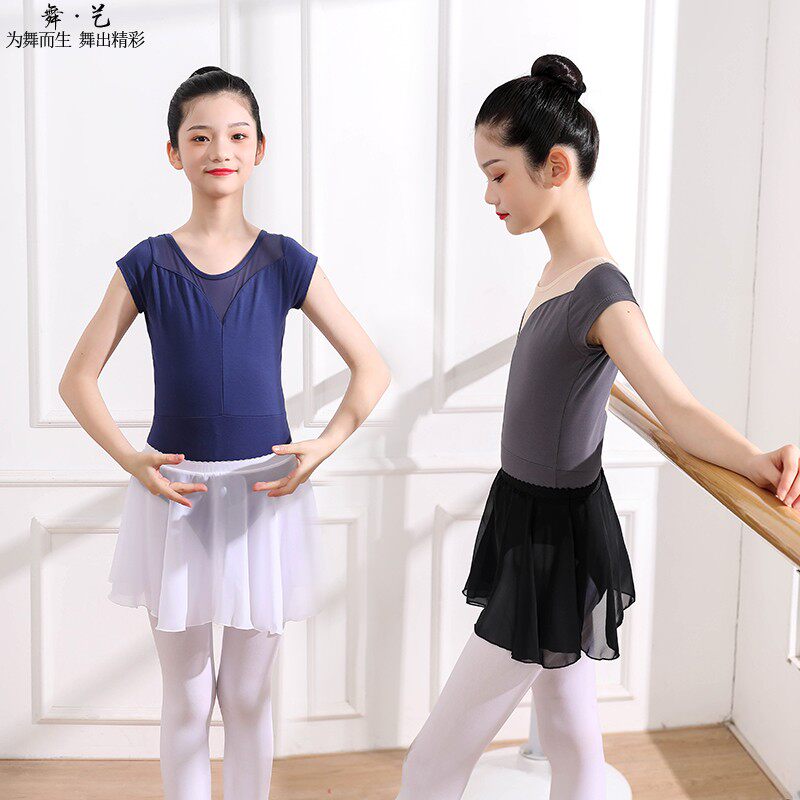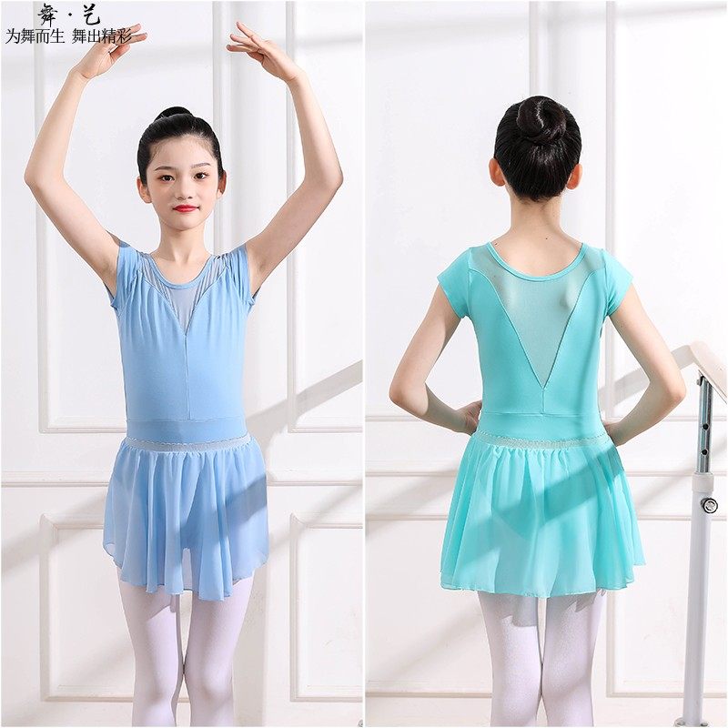 淘宝儿童舞蹈练功服短袖连体裙芭蕾舞裙体操服棉半袖加纱裙开档连体服