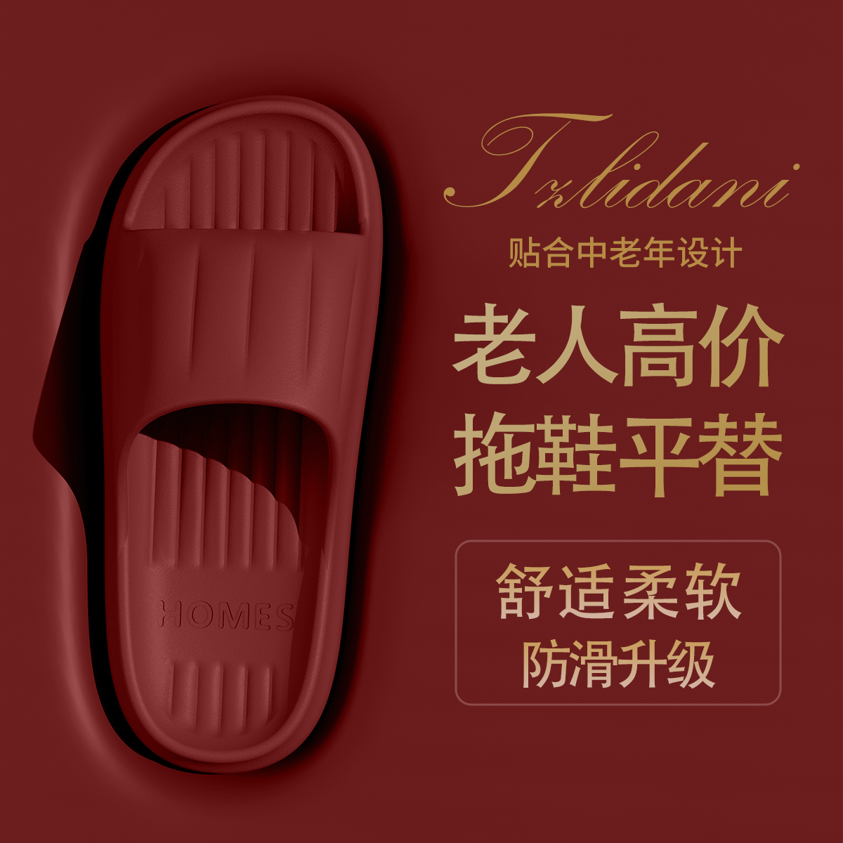 天猫老年人防滑拖鞋女2025夏季新款室内家居浴室洗澡防臭红色凉拖鞋男