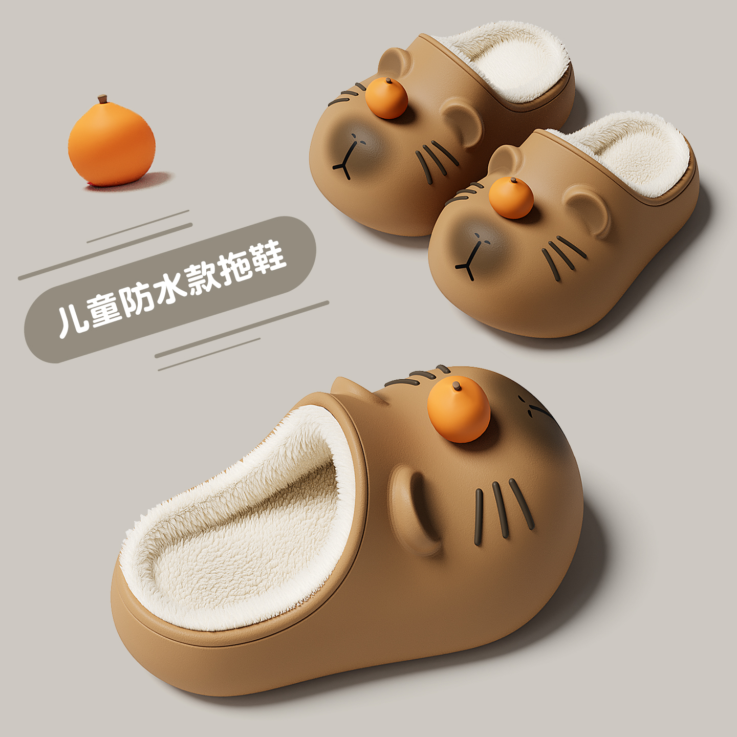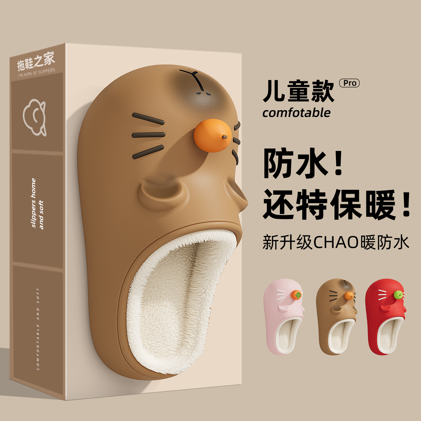 红豆可爱防水儿童棉拖鞋2025新款家居室内可外穿防滑亲子棉鞋女款