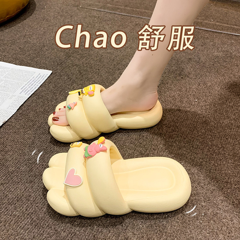 天猫卡通凉拖鞋女夏季ins潮外穿可爱大脚板踩屎感厚底防滑家用凉拖鞋