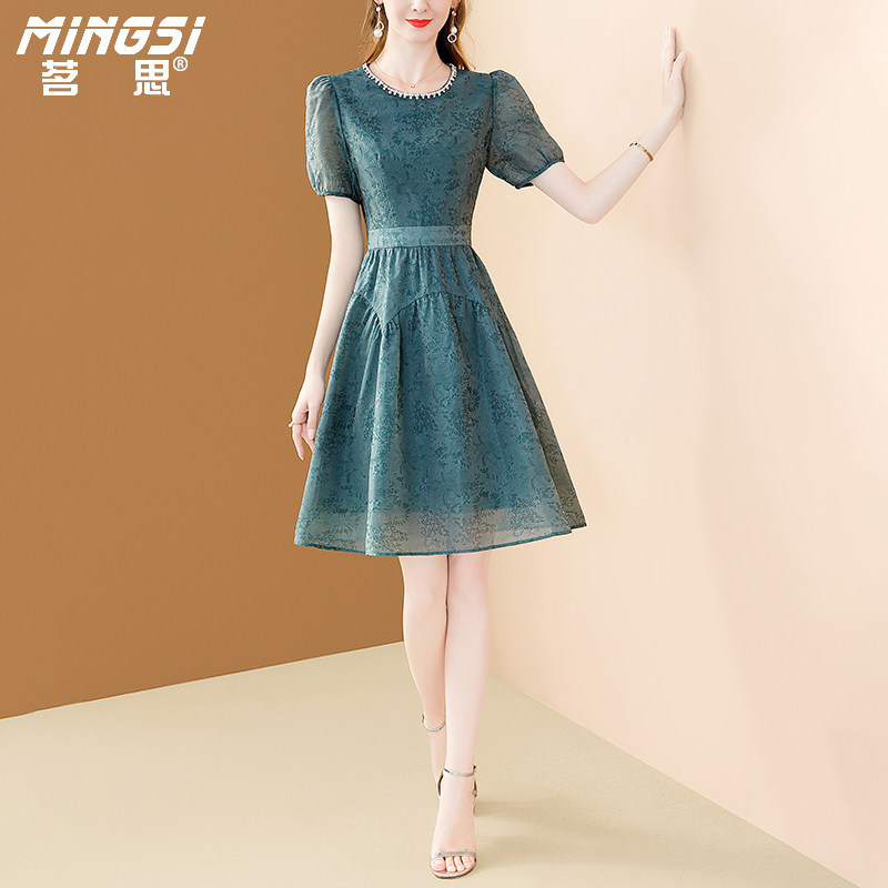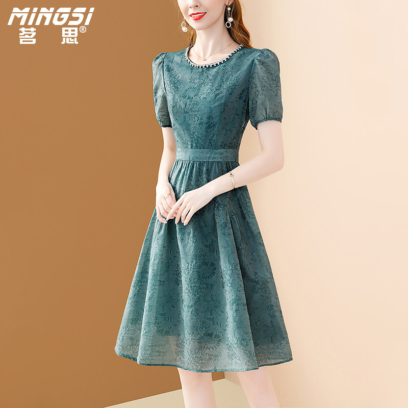 天猫茗思高级感提花醋酸连衣裙女夏季2026新款气质精致镶钻小个子裙子