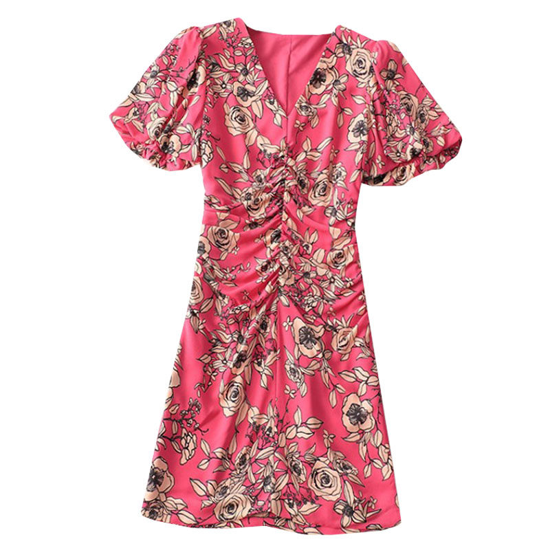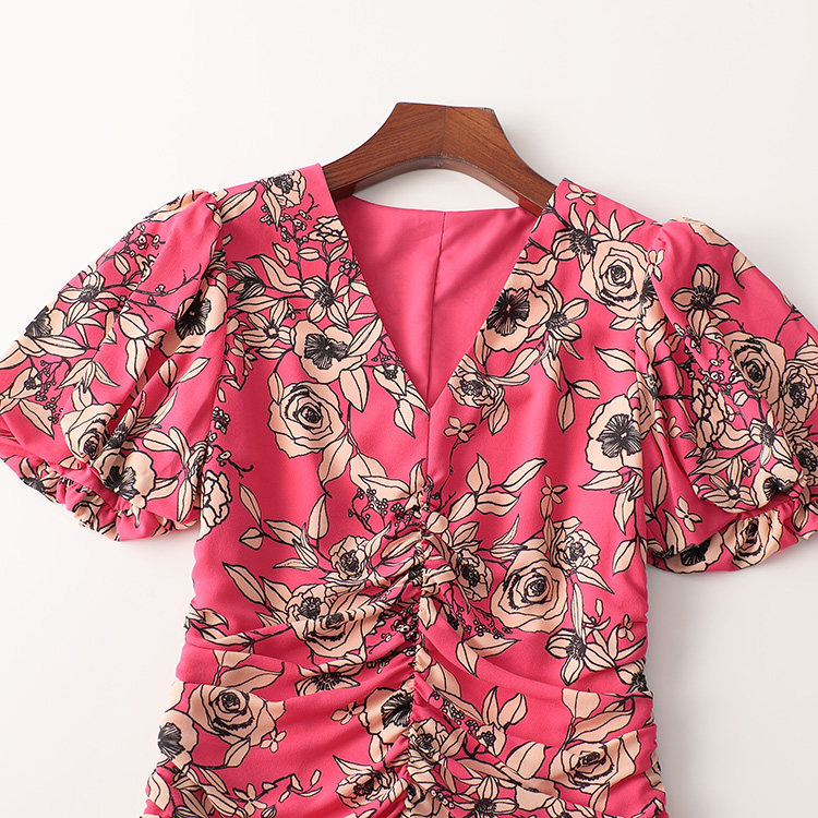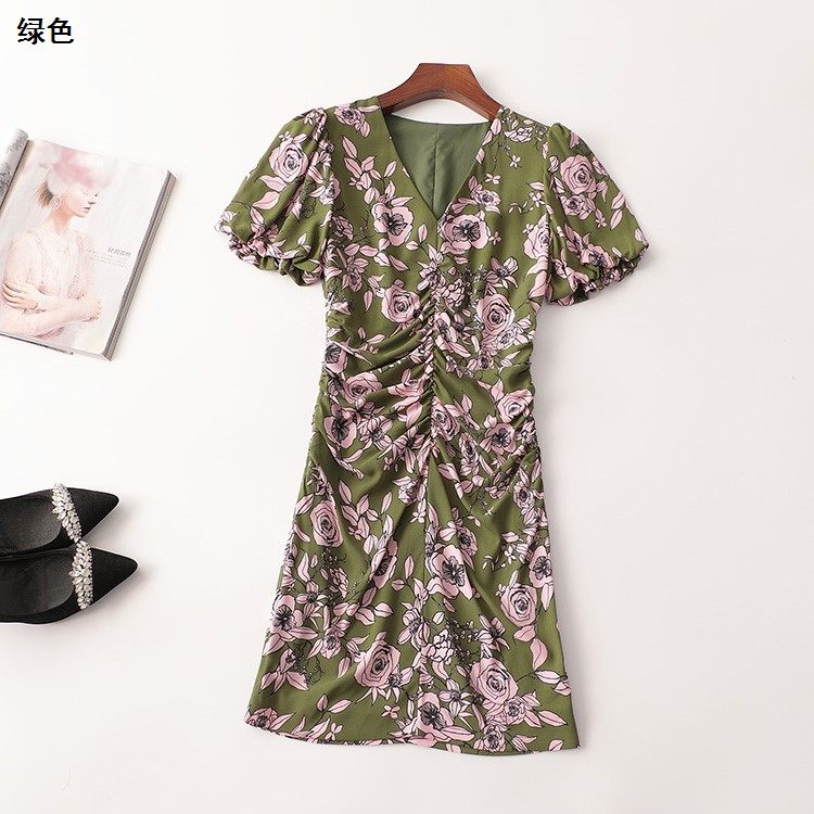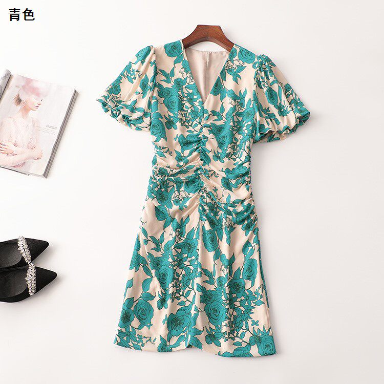 淘宝408817 夏连衣裙 深圳女印花长款短袖V领现货