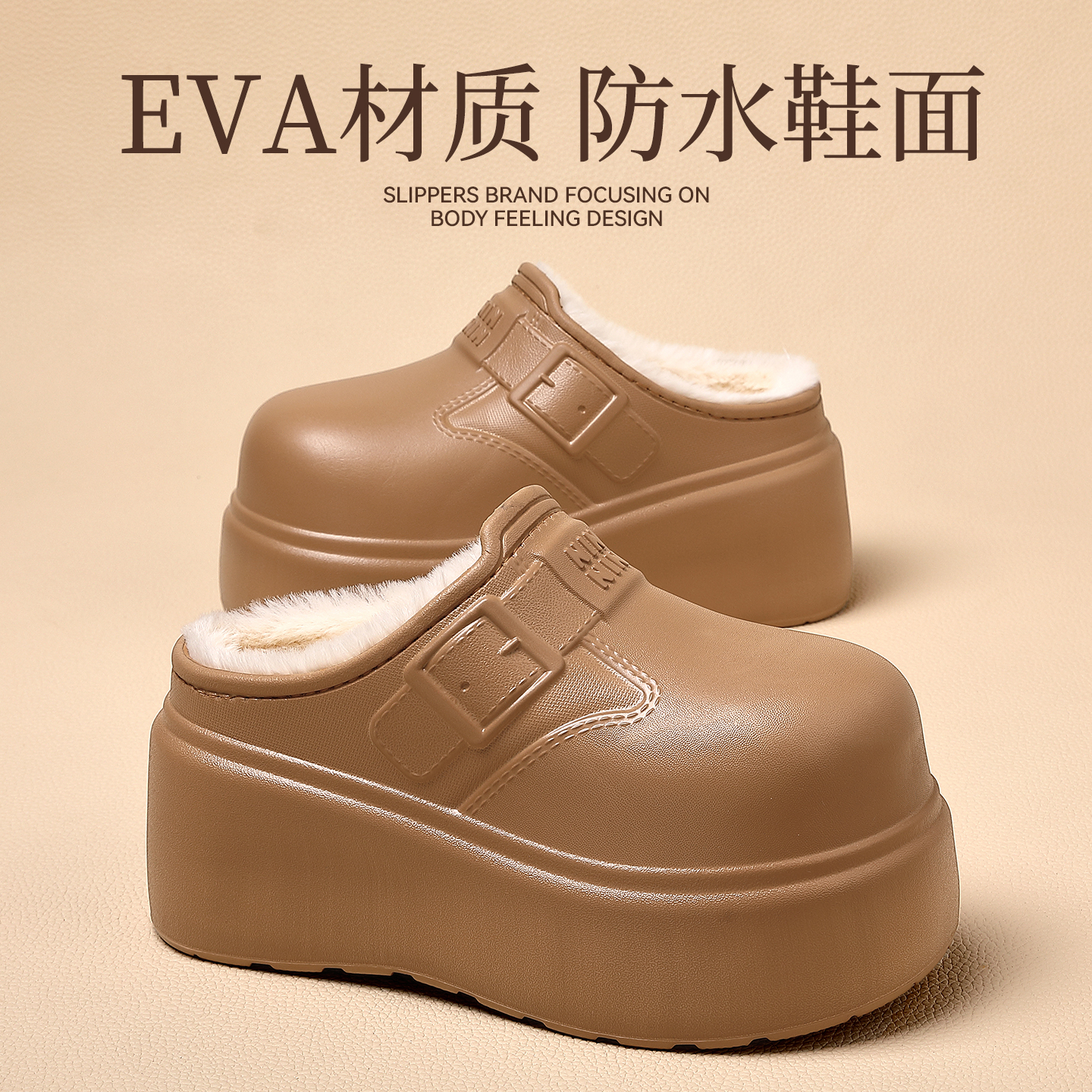 厚底毛毛拖鞋女外穿冬季保暖加绒加厚包头半拖雪地靴2025新款