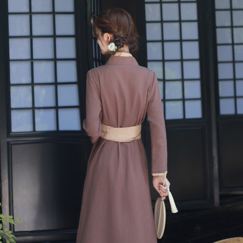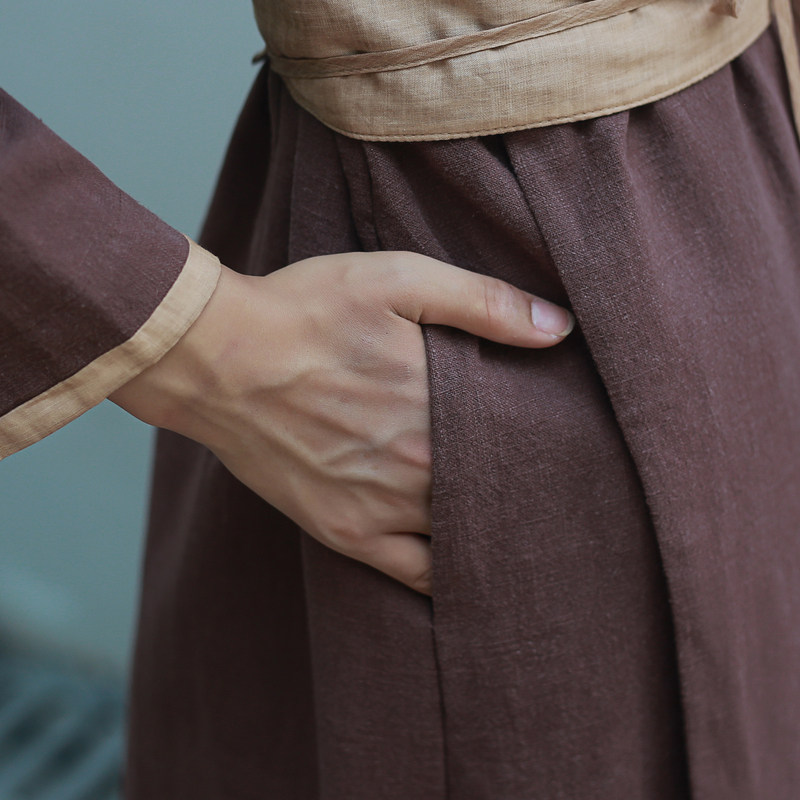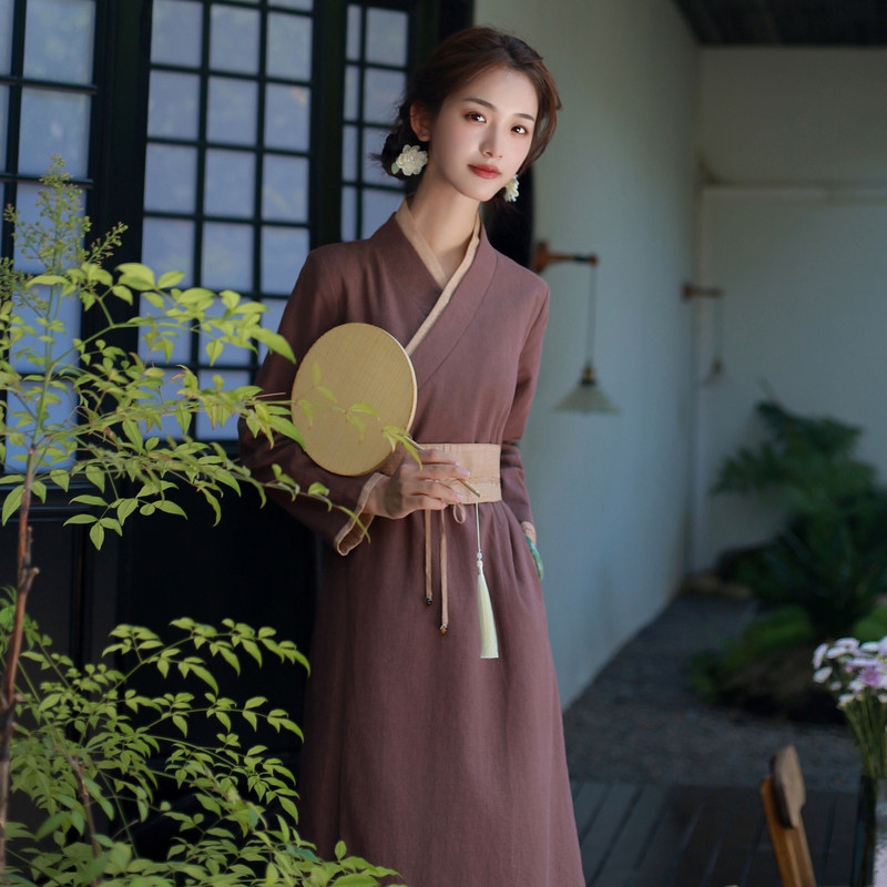 天猫新中式连衣裙女春秋款2025新款交襟汉服女轻国风棉麻女裙子茶服女
