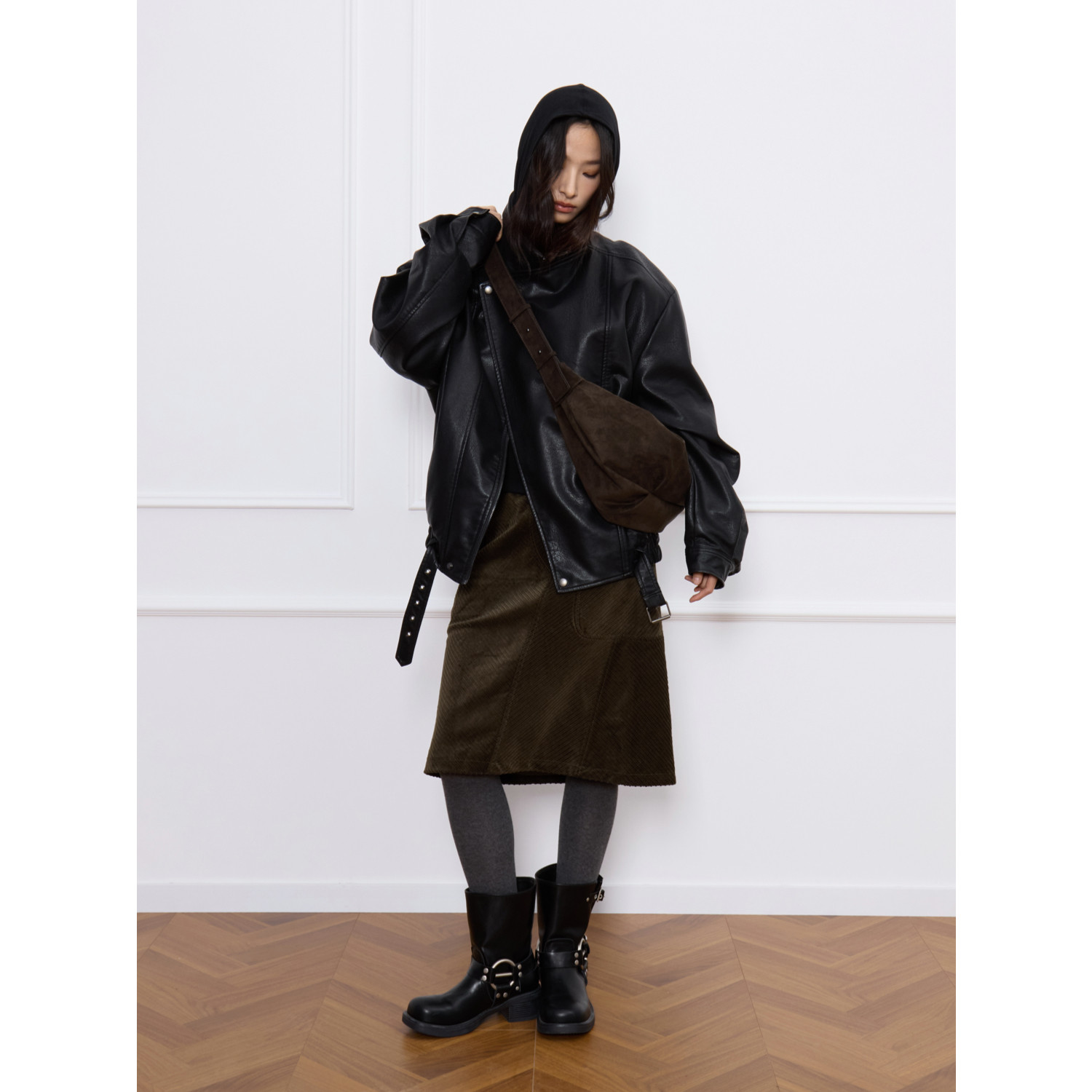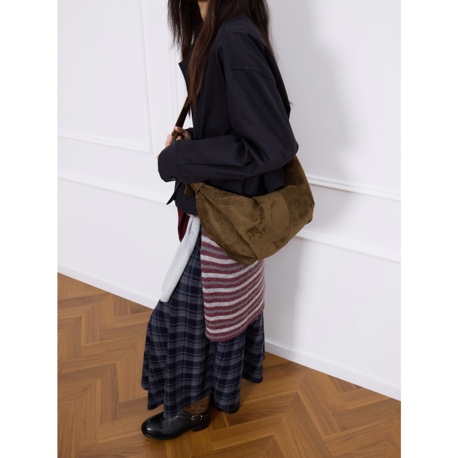 LE AMO|原创'泰迪'牛角包复古磨砂麂皮绒慵懒调节肩带斜挎可颂包
