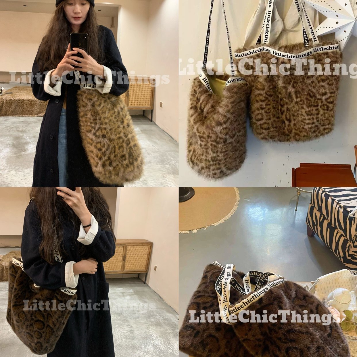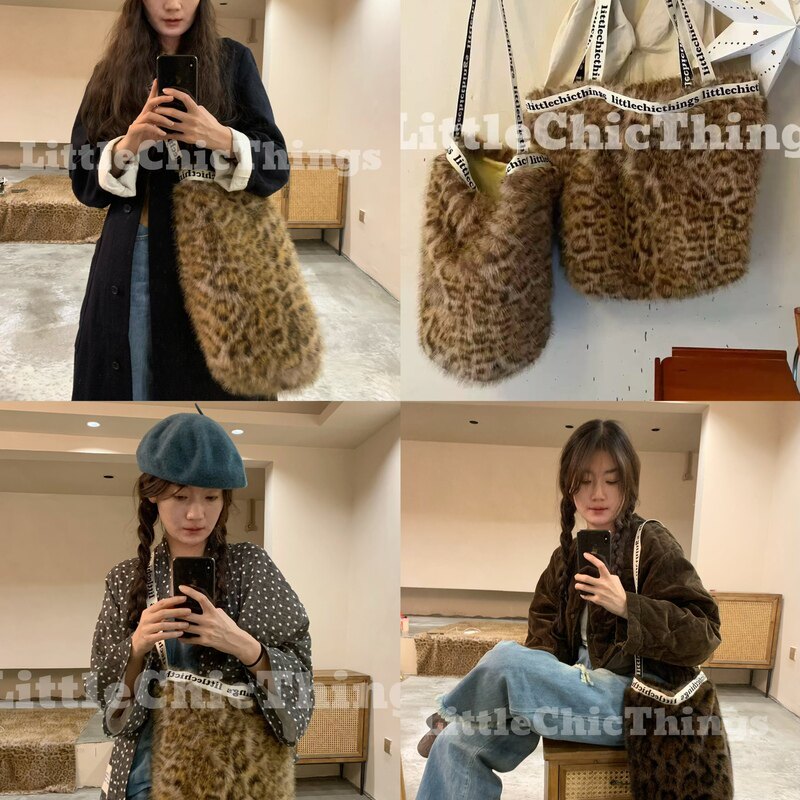 淘宝LittleChicThings软糯质感豹纹字母织带单肩斜挎包通勤上课托特包