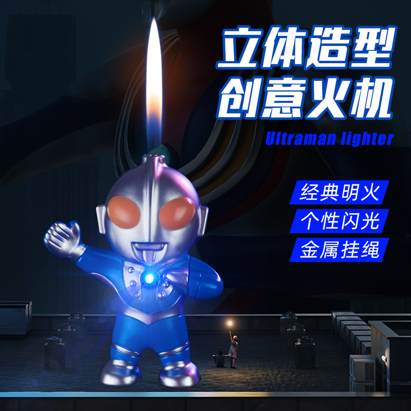 淘宝创意配饰挂链多功能能量灯光奥特曼塑料人偶造型玩具 带打火机
