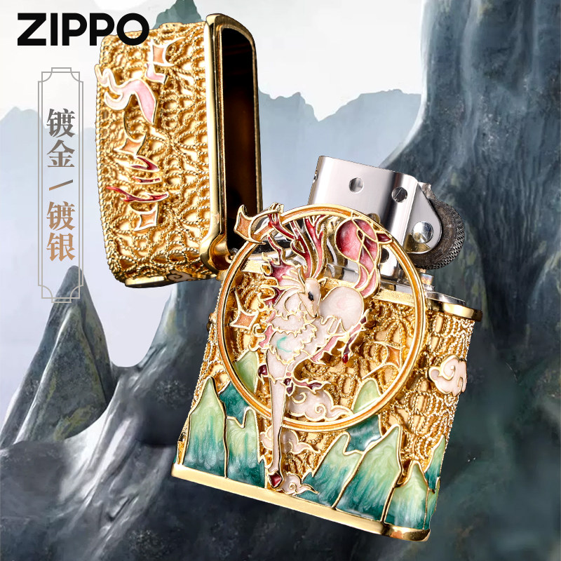 天猫ZIPPO打火机 一鹿相伴镀金夜光珐琅限量生日礼物送男友高颜值礼物