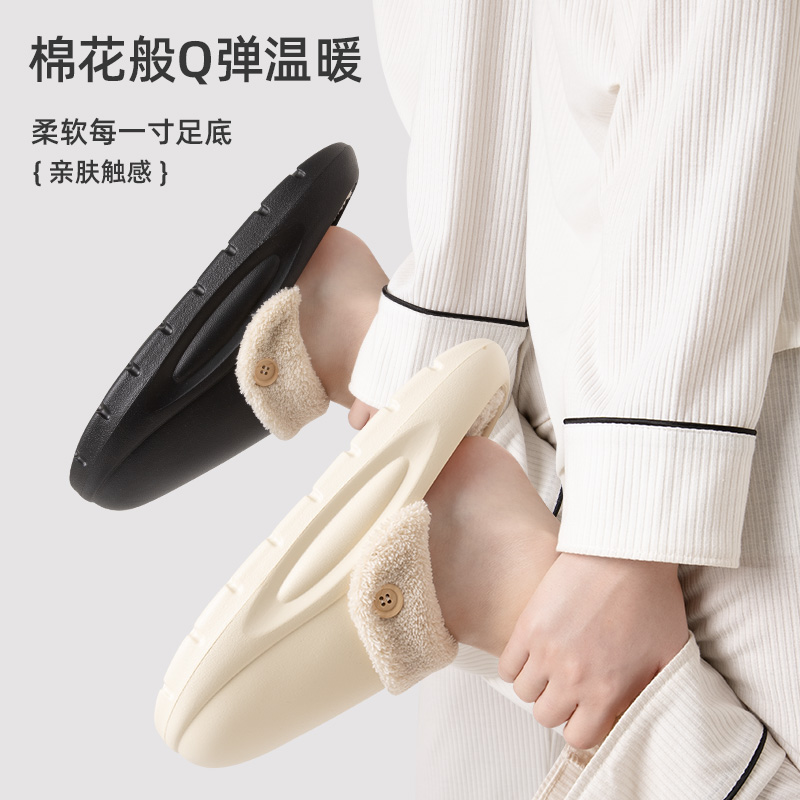天厚底棉拖鞋女款2025新款秋冬季外穿防滑防水增高毛绒保暖棉拖冬天