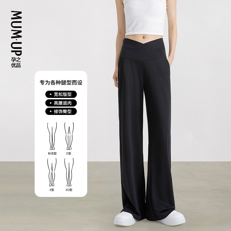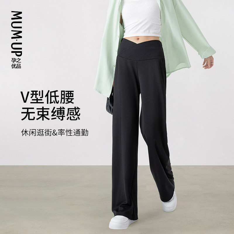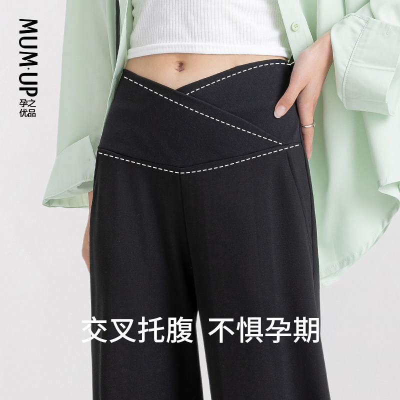 天猫孕之优品孕妇裤子外穿低腰孕期托腹宽松垂感孕妇阔腿裤子夏薄款