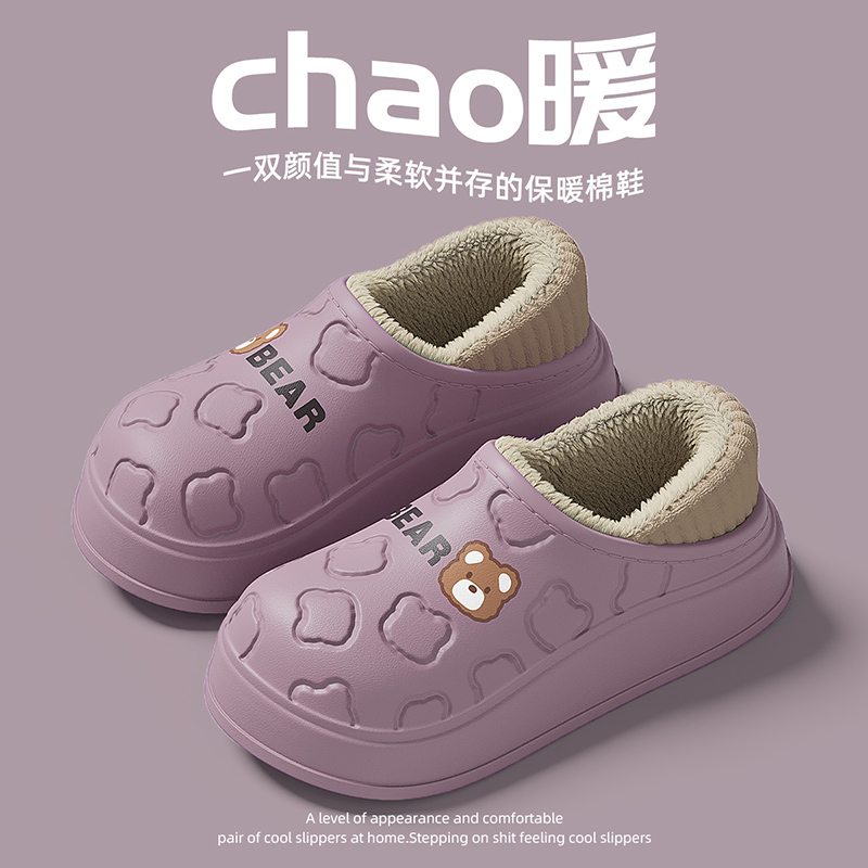 踩屎感棉拖鞋女2025新款室内居家保暖防水防滑加毛绒可爱棉拖女款