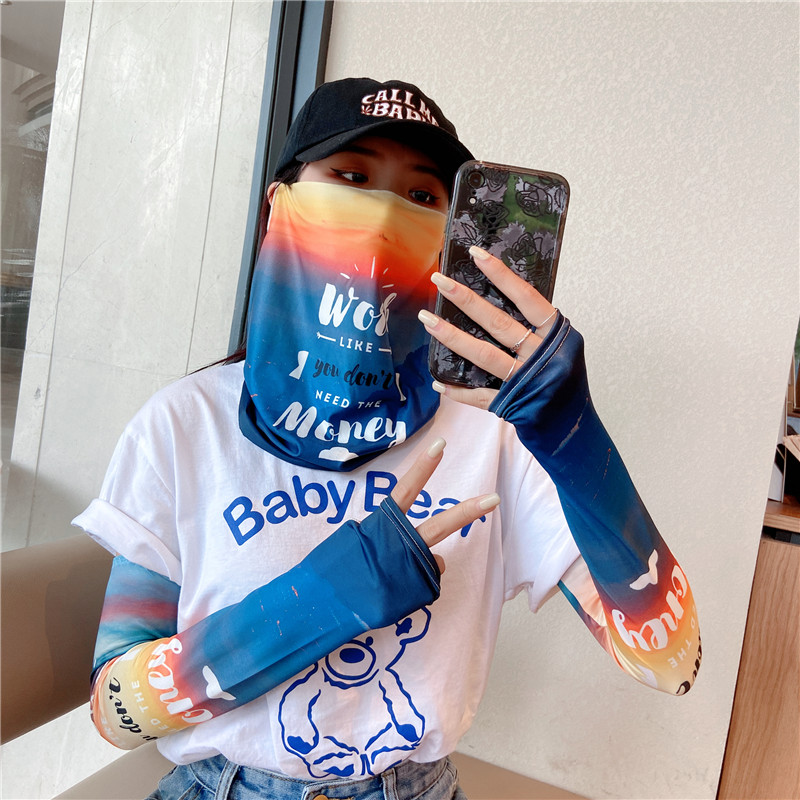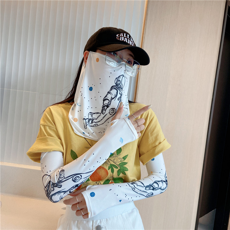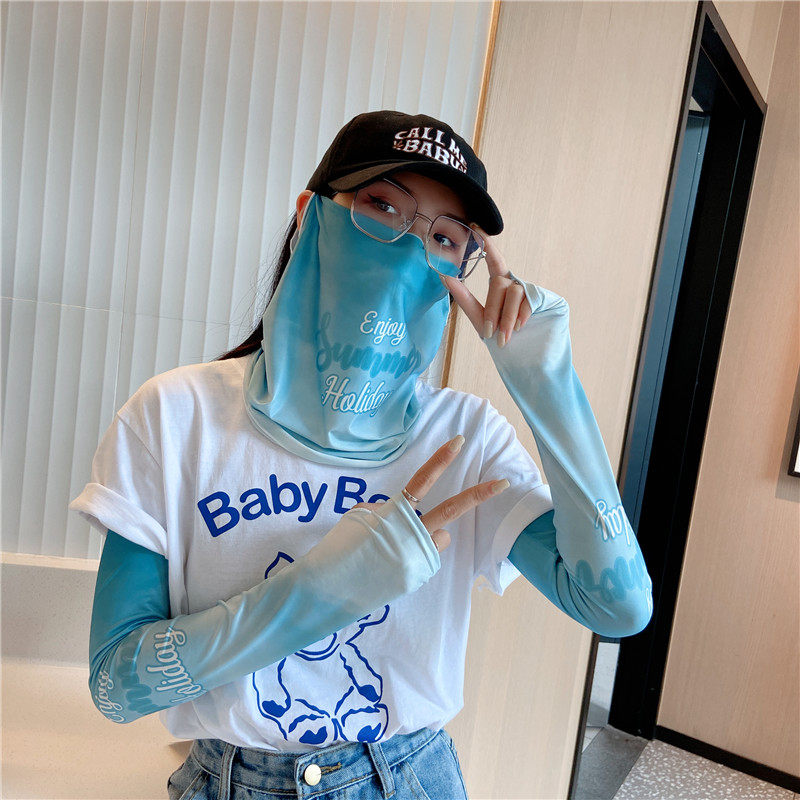天猫防晒面罩冰丝袖套夏天女设计感开车神器薄款冰袖潮护颈面纱遮脸罩