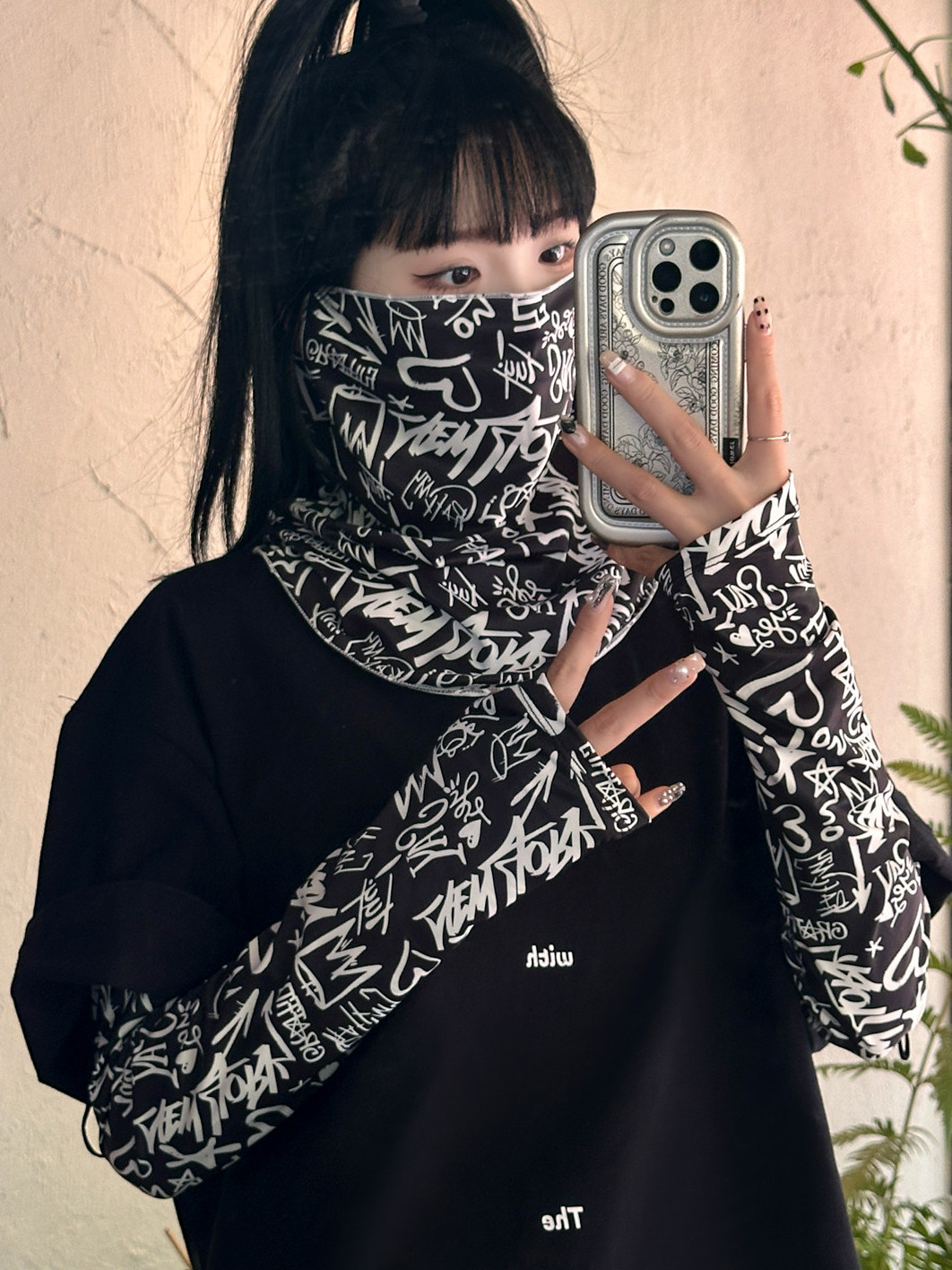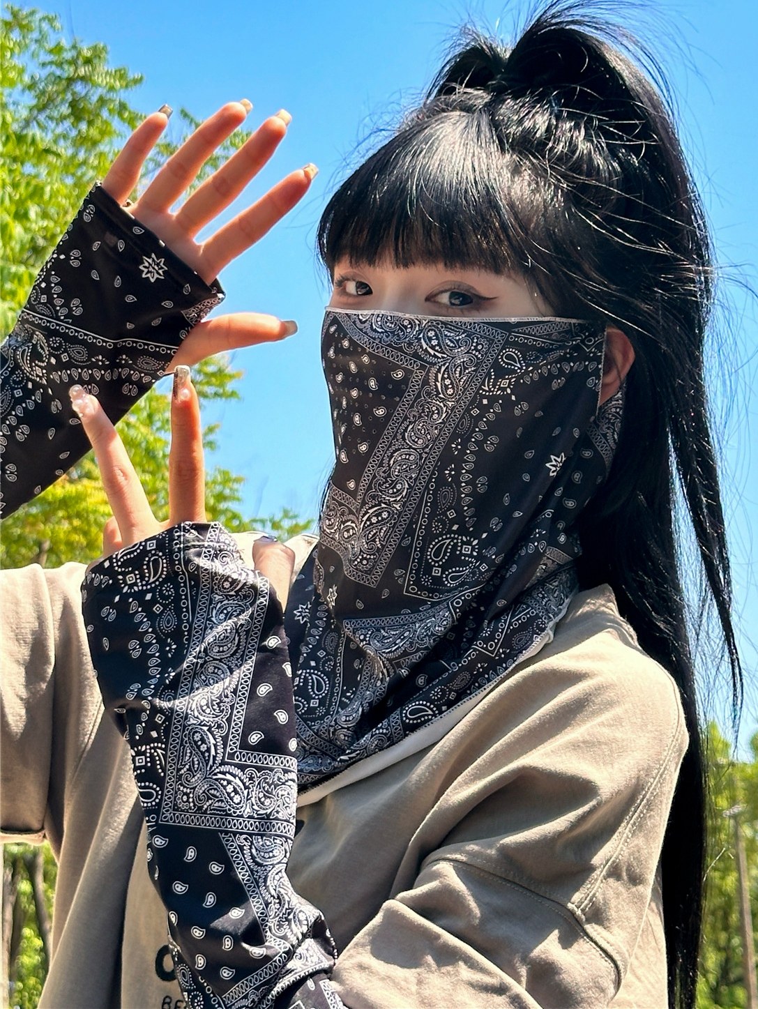 天猫夏季新款防晒袖套男女户外骑行挂耳护脸遮阳面罩百搭薄款透气冰袖
