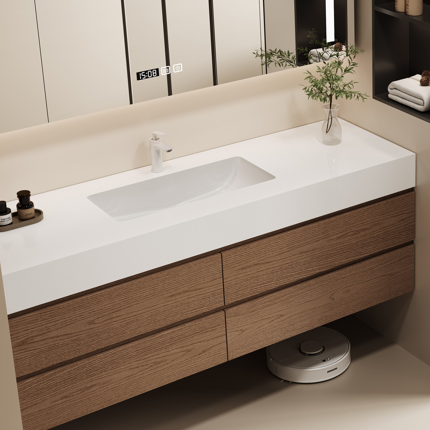 天小红书同款洞石酒店风岩板热弯一体盆浴室柜组合卫生间洗漱台手盆