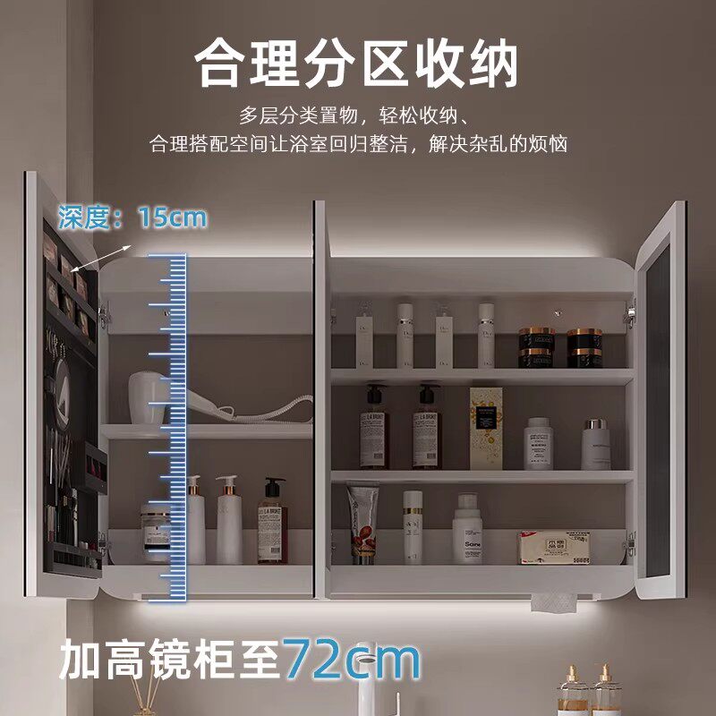 天猫新款实木圆角浴室镜柜单独卫生间挂墙式智能镜柜带灯壁挂镜箱定制