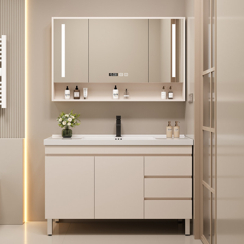 淘简约现代卫生间实木防潮板浴室柜组合一体陶瓷盆洗漱台洗脸盆洗手