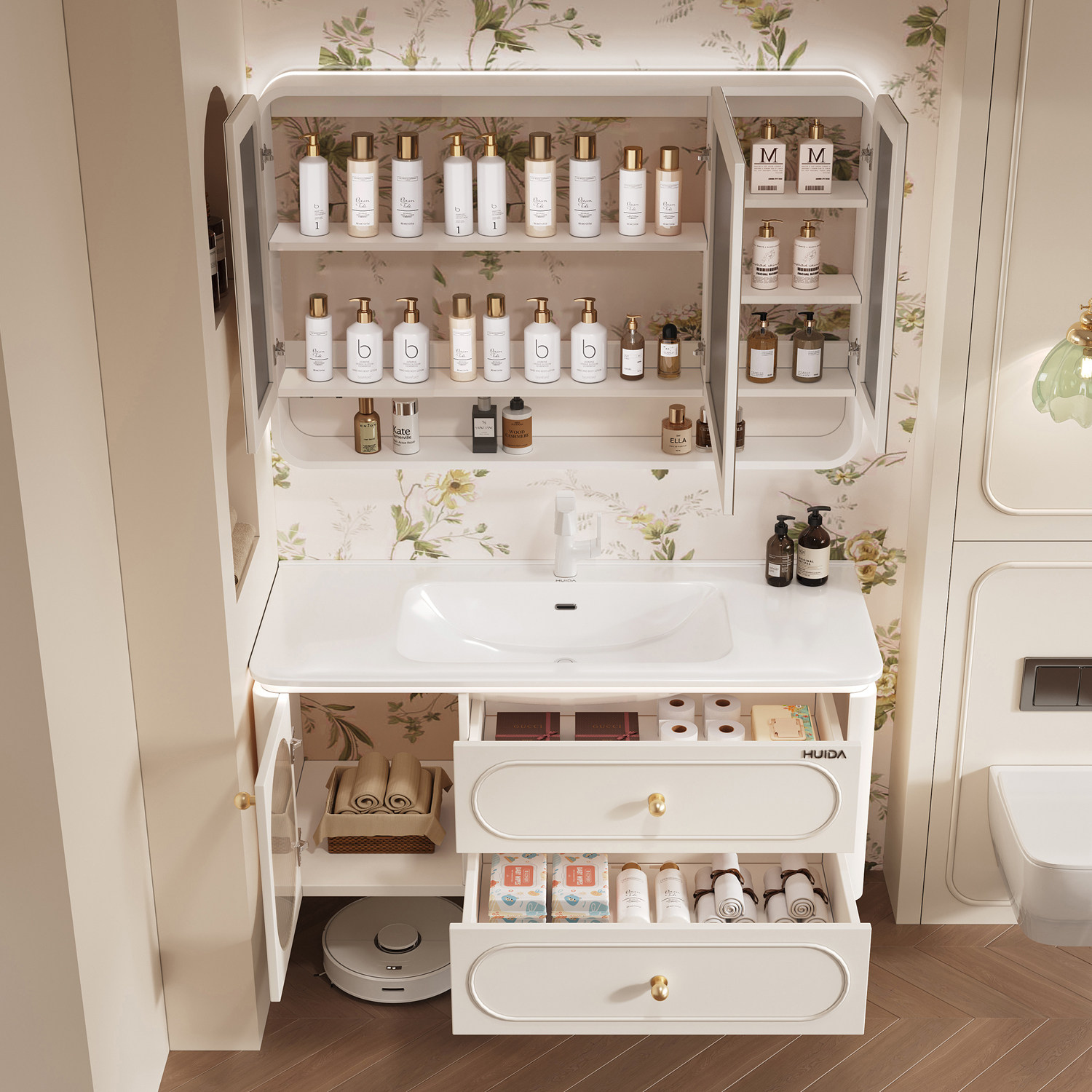 天猫惠达法式橡胶木浴室柜组合一体陶瓷盆洗漱台卫生间实木洗脸手台盆