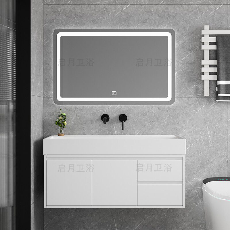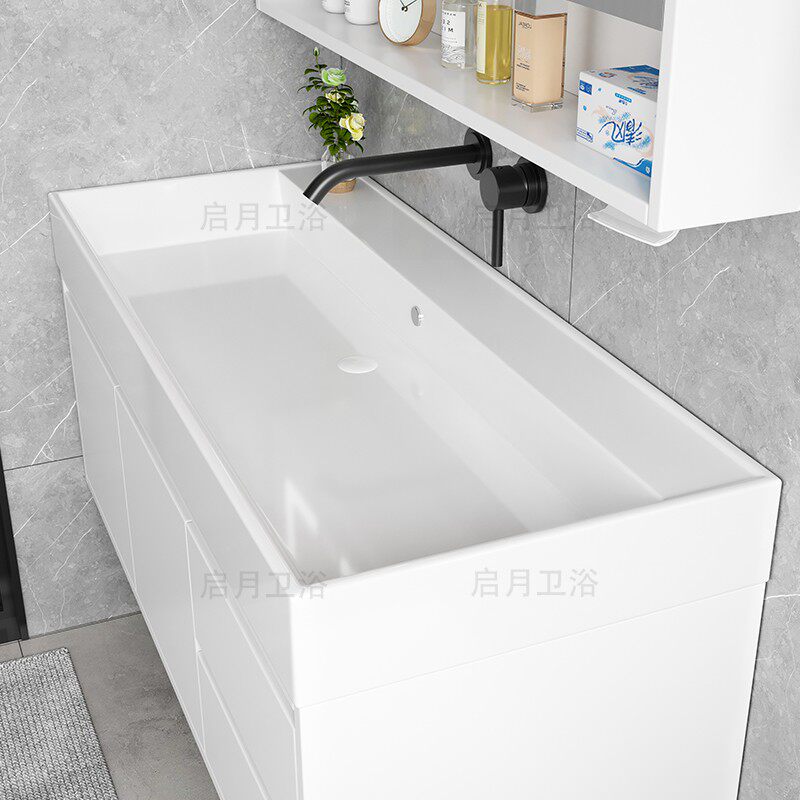 这款暗装龙头陶瓷一体大口盆浴室柜组合,采用简约现代设计,融合实用与美观。台面无龙头孔设计,搭配隐藏式暗装龙头,整体线条流畅,视觉清爽整洁,易于清洁维护。陶瓷一体成型盆体,表面光滑细腻,抗污耐刮,大容量盆面满足日常洗手、洗脸、漱口等需求。柜体结构稳固,提供充足储物空间,可收纳洗漱用品,保持台面整洁。适用于现代、极简或轻奢风格的浴室空间,安装便捷,兼具高颜值与功能性,为用户打造舒适便捷的洗漱体验,是提升卫浴品质的理想之选。
