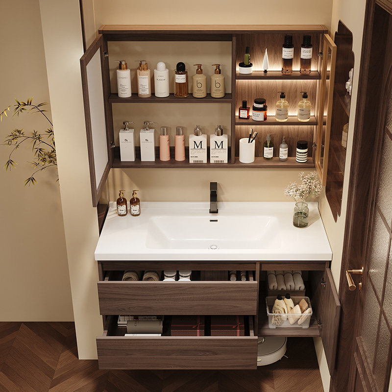 简约现代卫生间实木防潮板浴室柜组合一体陶瓷盆洗漱台洗脸盆洗手