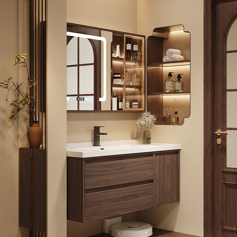 惠达中古风浴室柜组合岩板陶瓷无缝盆卫生间洗手脸洗漱台盆柜组合