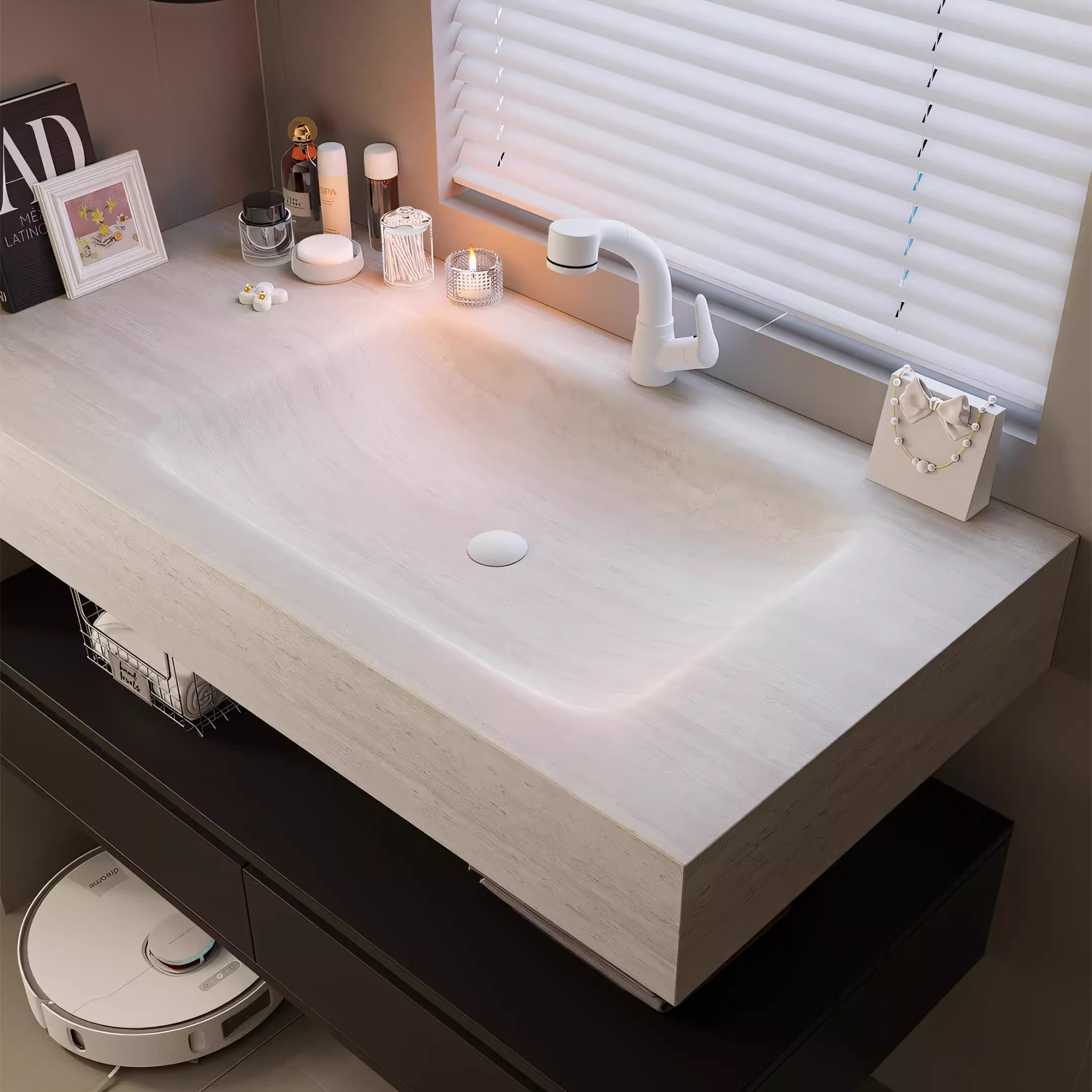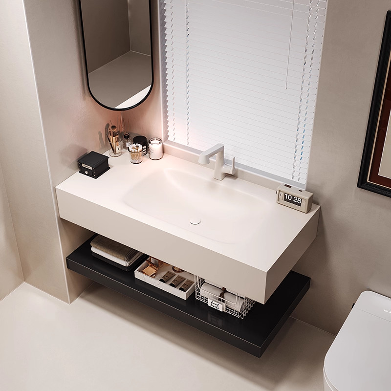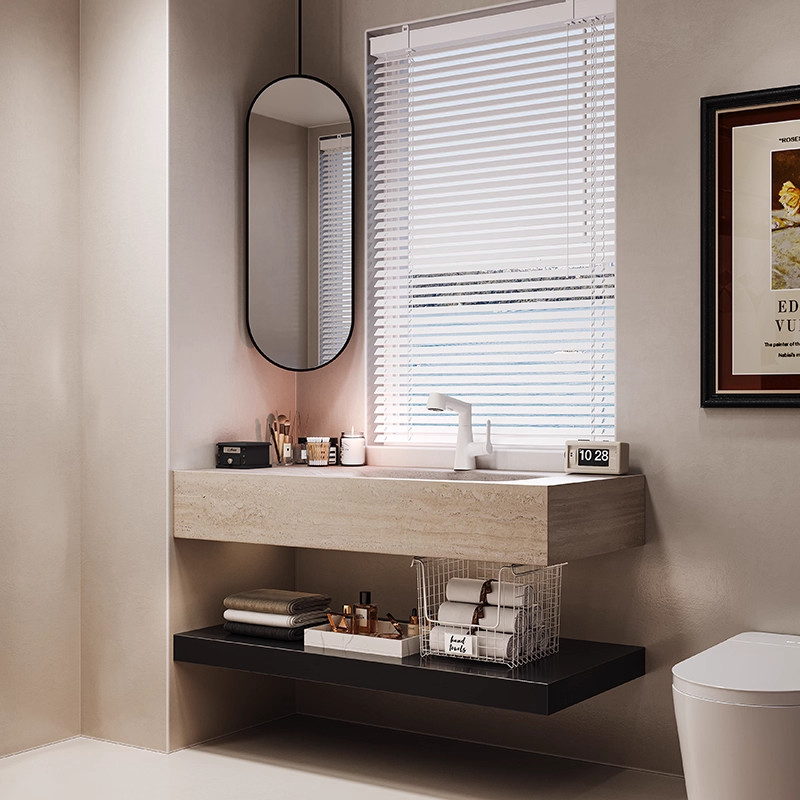 天猫小红书同款洞石酒店风岩板热弯一体盆浴室柜组合卫生间洗漱台手盆