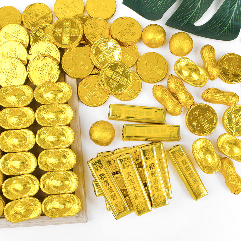 淘宝巧克力蛋糕装饰摆件金币元宝金条花生祝寿婚庆喜糖可食用烘焙插件