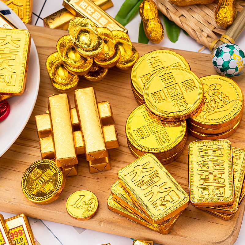 这款巧克力金币、花生元宝、金条及足球造型糖果,集喜庆、趣味与美味于一体,专为生日、祝寿、婚庆等庆典场合精心设计。采用优质巧克力与香脆花生融合,外层包裹细腻糖衣,口感丰富,粒粒酥脆。造型逼真,寓意吉祥——金币元宝象征财源广进,足球造型增添活泼气息,适合儿童派对或主题庆典。既可作为喜糖分发给宾客,也能点缀蛋糕、饼干,提升节日氛围。独立小包装,方便携带与分享,是节日馈赠、聚会助兴的理想选择,让甜蜜与祝福伴随每一刻美好时光。