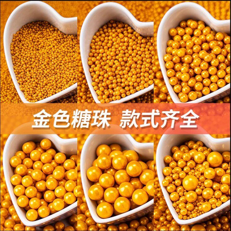 淘宝烘焙金珠白色糖珠蛋糕装饰糖豆可食用冰淇淋彩针糖彩色珍珠糖500g