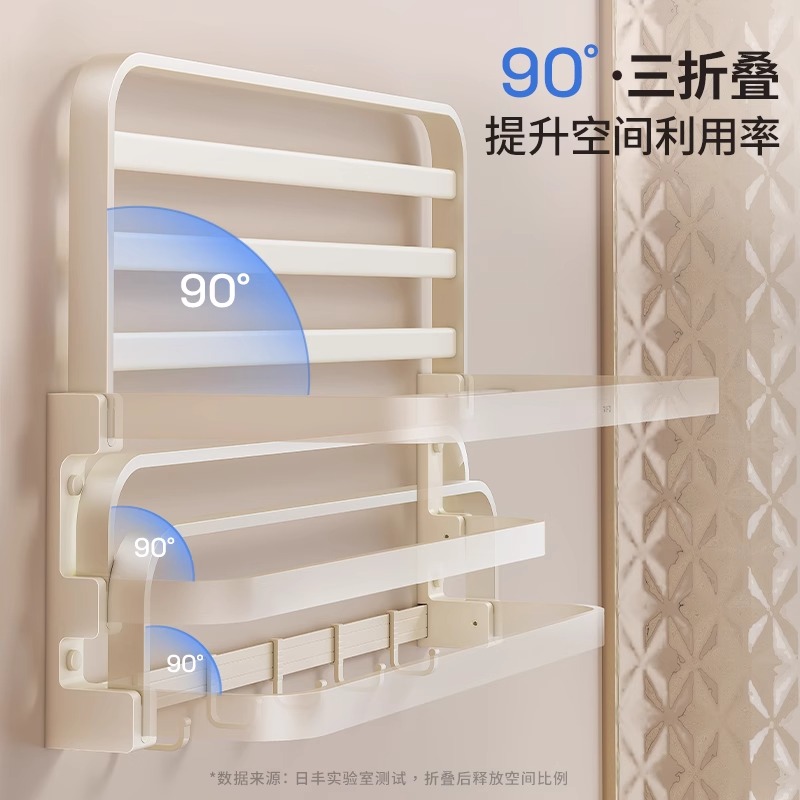 淘摩恩304不锈钢折叠收纳浴巾架壁挂浴室毛巾架 免打孔卫生间置物架