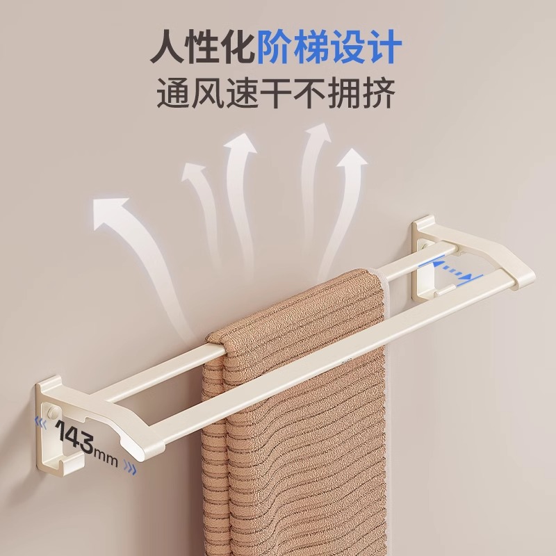 淘太空铝卫浴挂件双层毛巾架折叠浴巾架浴室卫生间置物架加厚带挂钩