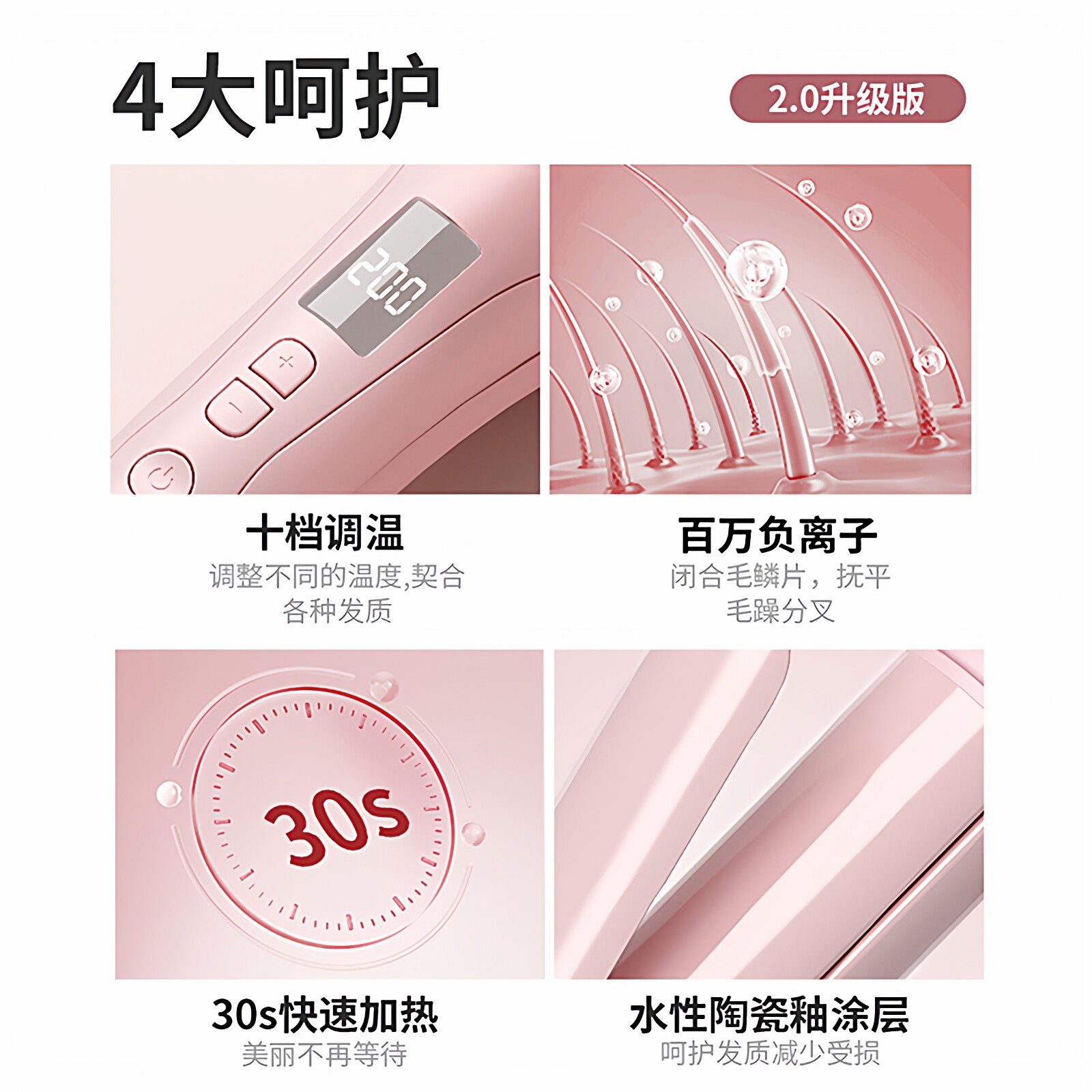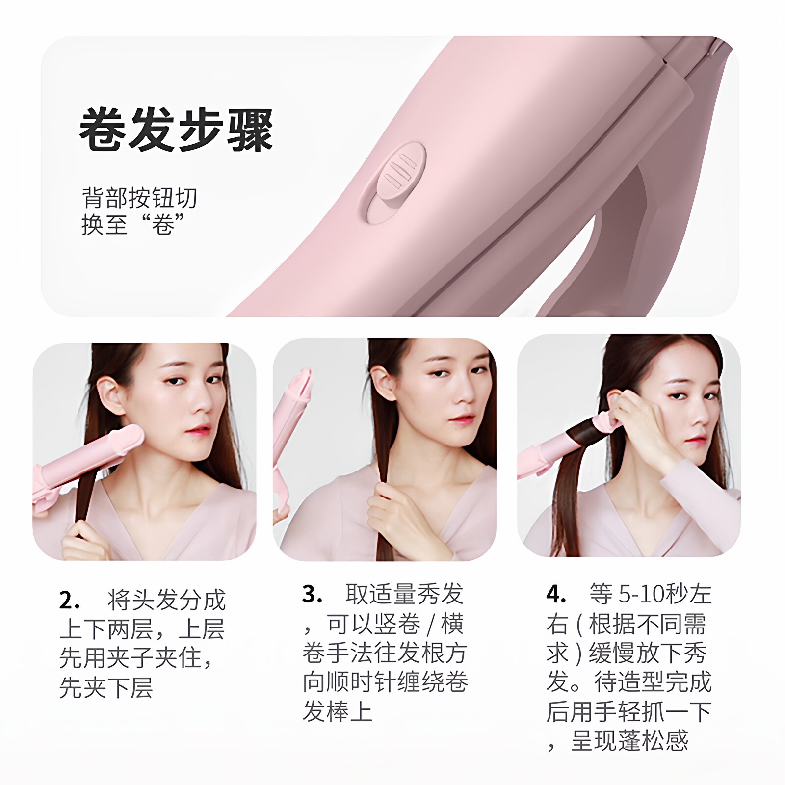 唯戈新款日本卷发棒直卷两用陶瓷负离子蛋卷头烫发器,采用32mm大卷设计,轻松打造自然蓬松的蛋卷头或优雅大波浪。搭载优质陶瓷涂层,均匀导热,减少高温损伤,同时释放负离子,有效中和静电,抚平毛躁,令秀发光泽顺滑。直卷两用功能,满足不同造型需求,操作简单便捷。智能恒温技术,多档温度调节,适配各种发质,避免过热伤害。人性化设计,360°旋转电源线,使用更灵活。轻巧机身,握感舒适,居家或出行皆宜。唯戈专注护发科技,让每一次造型都成为呵护秀发的过程,轻松拥有迷人卷发。