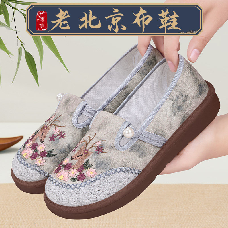 天猫老北京布鞋女官方旗舰店2026新款软底防滑透气休闲舒适妈妈绣花鞋