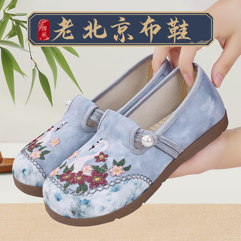 天春秋款老北京绣花布鞋女单鞋复古老年妈妈鞋软底刺绣一脚蹬平底鞋