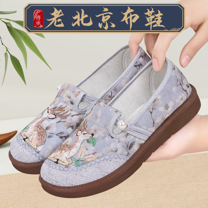 天春秋款老北京绣花布鞋女单鞋复古老年妈妈鞋软底刺绣一脚蹬平底鞋