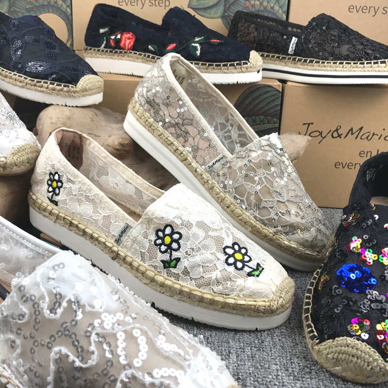 淘宝jm快乐玛丽女鞋一脚蹬镂空蕾丝渔夫鞋绣花懒人鞋时尚休闲布鞋特价