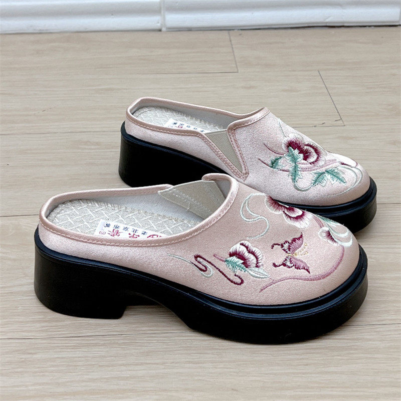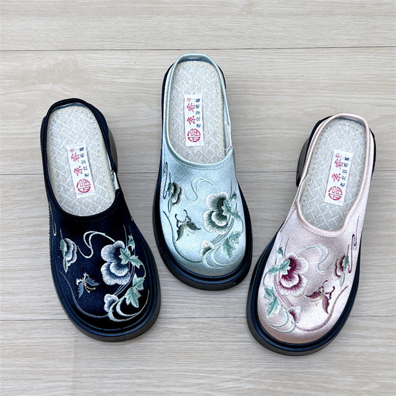 淘宝京睿老北京布鞋汉服鞋新中式绣花鞋半拖鞋厚底轻便软底女单鞋方跟