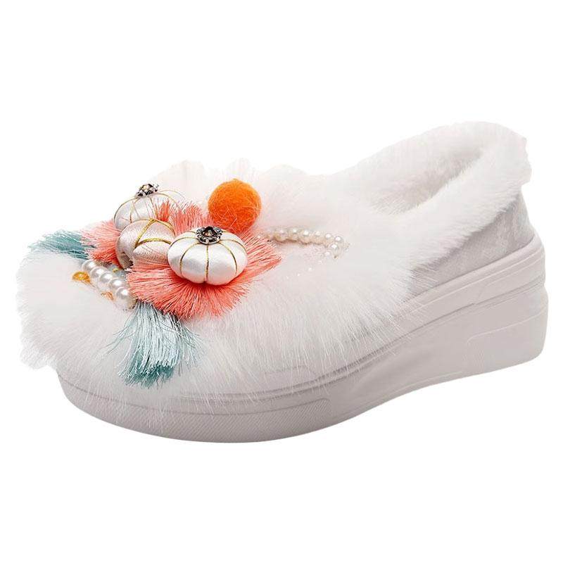 冬季手工加绒成人虎头鞋中国风老北京布鞋平底复古汉服绣花棉鞋女