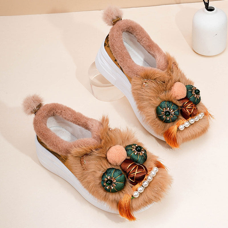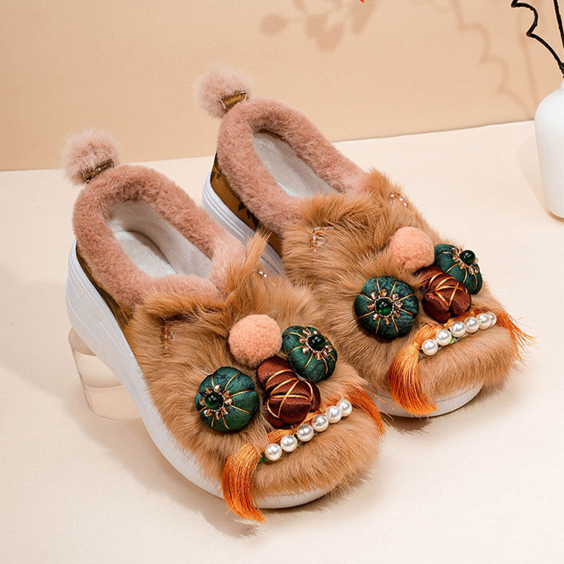 这款原创冬季加绒非遗手工刺绣虎头鞋,融合传统民族工艺与现代保暖设计,专为女性打造。鞋面采用精湛非遗手工刺绣技艺,以寓意吉祥的虎头图案为主,针脚细腻、色彩浓郁,尽显东方美学韵味。内里加厚加绒,温暖舒适,适合寒冷季节穿着。厚底设计不仅提升保暖性,更增添时尚感与舒适度。整体采用优质棉布与柔软内衬,贴合脚型,行走轻便。无论是日常穿搭还是作为文化礼品,这款民族风绣花棉鞋都彰显独特品味,将传统手工艺之美穿在脚上,温暖又富有文化气息。