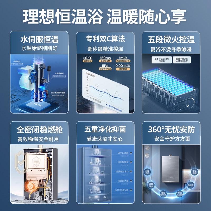 海尔燃气热水器家用天然气款,搭载先进水伺服恒温技术,实现精准控温,告别忽冷忽热。采用密闭下置燃烧系统,燃烧充分、安全可靠,有效防止一氧化碳泄漏,保障家庭洗浴安全。16升大容量设计,满足多口之家多点同时用水的需求。内置节能恒温模块,智能调节燃气与水量,节能省气更环保。整机运行静音低噪,操作简便,支持智能预约与远程操控。享受国家节能补贴政策,购机更实惠。海尔品质保障,售后无忧,是追求舒适、安全、节能家庭洗浴的理想之选。