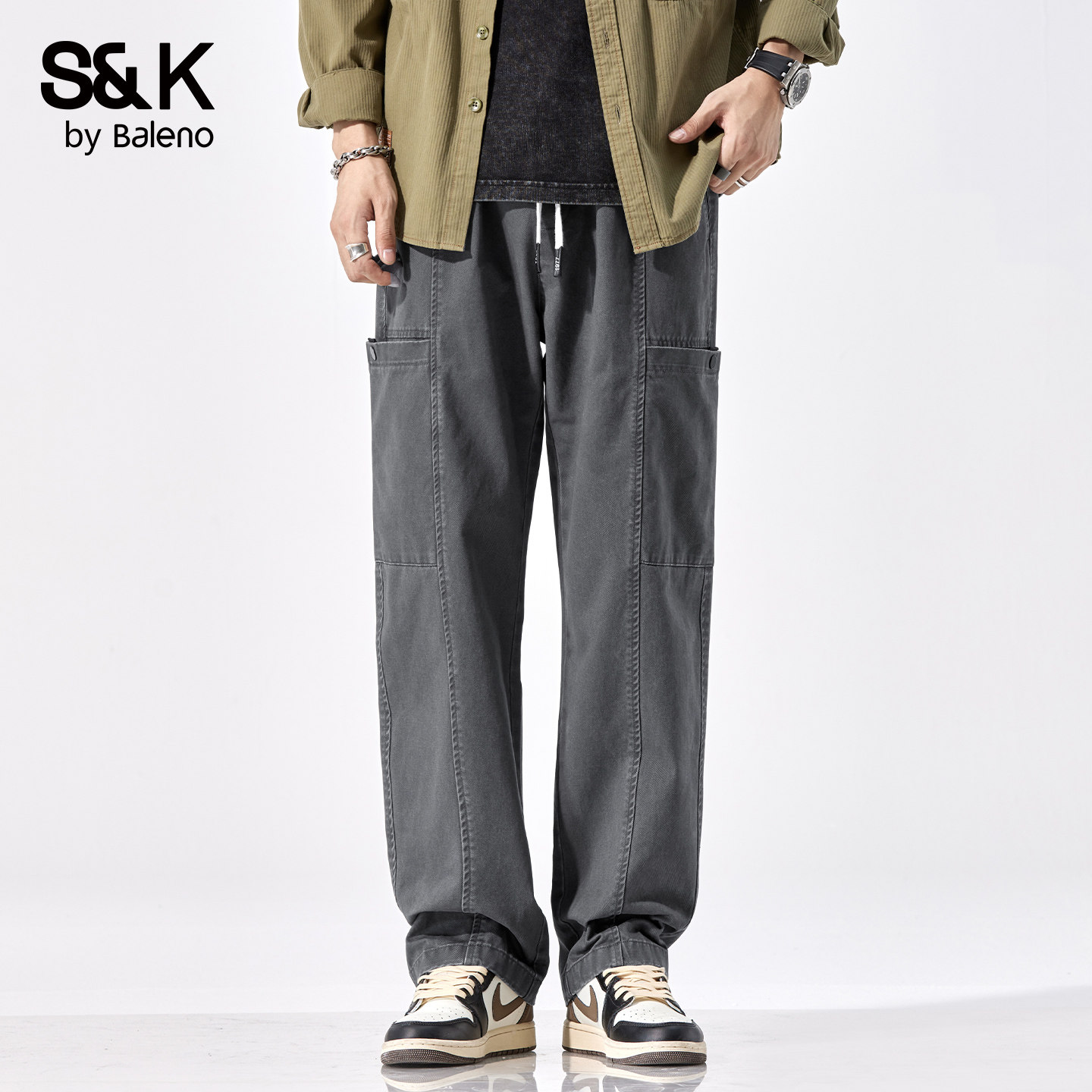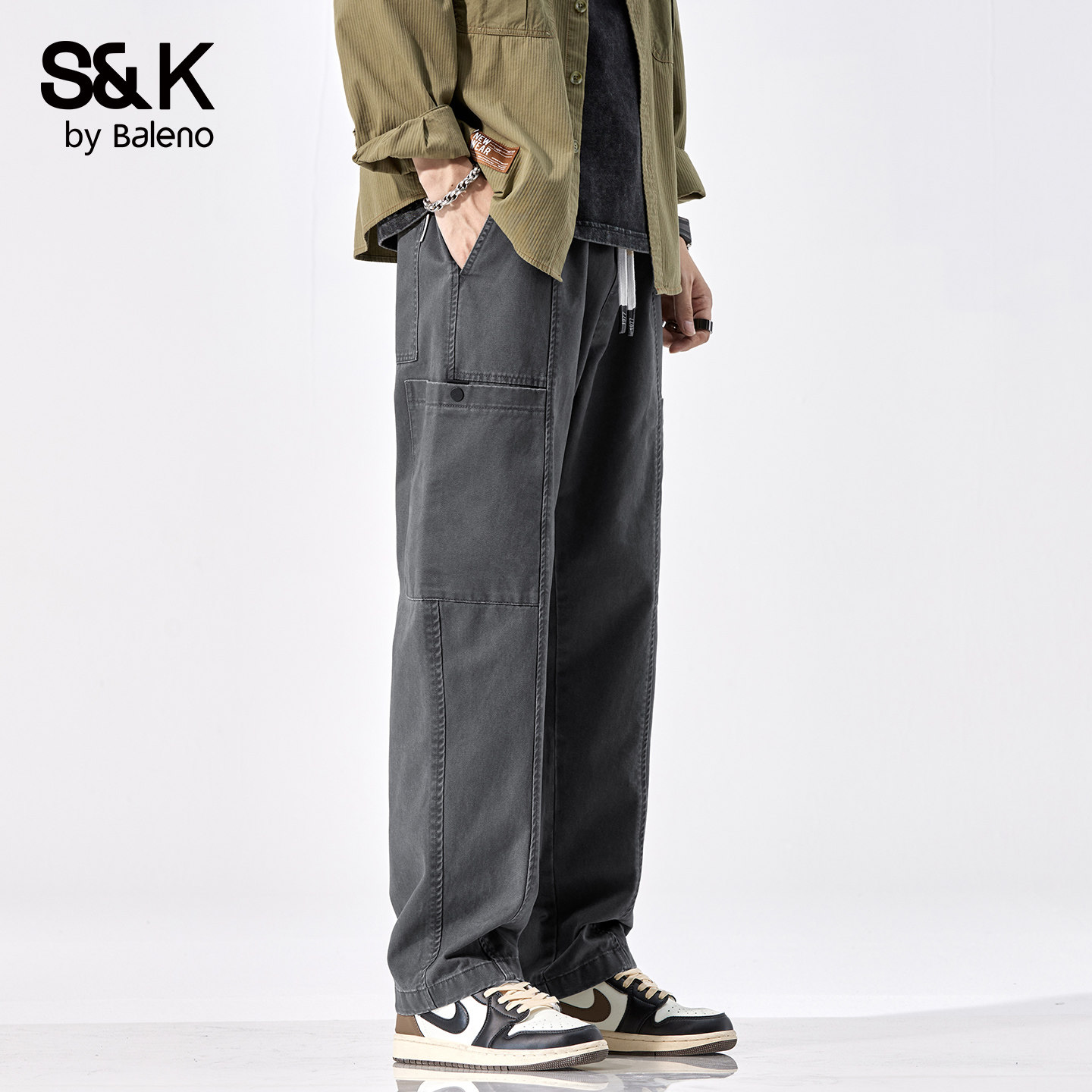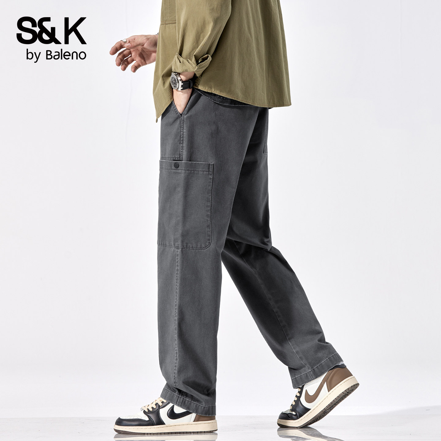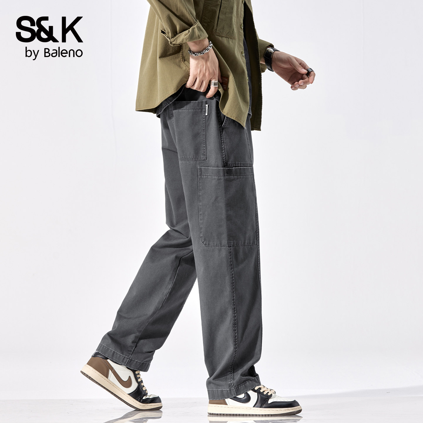 天猫班尼路SK纯棉休闲裤男士春夏新款潮牌宽松直筒多口袋工装裤子男YS