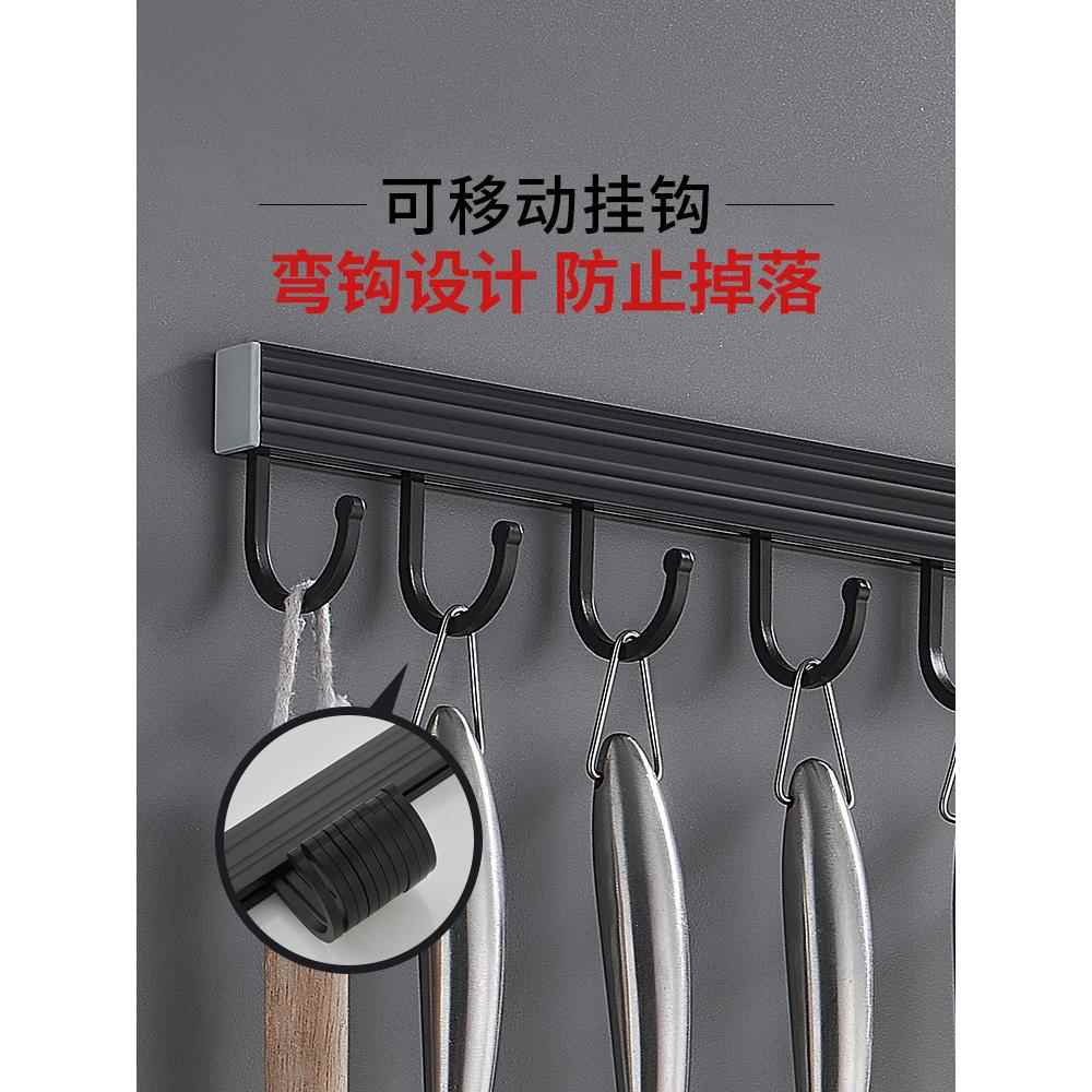 淘免打孔厨房挂杆挂件太空铝黑色厨房置物架厨具五金厨卫挂钩壁挂架