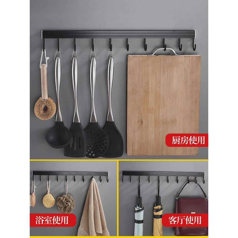 淘免打孔厨房挂钩壁挂厨卫挂件衣钩C粘钩锅铲钩太空铝挂架排钩置物