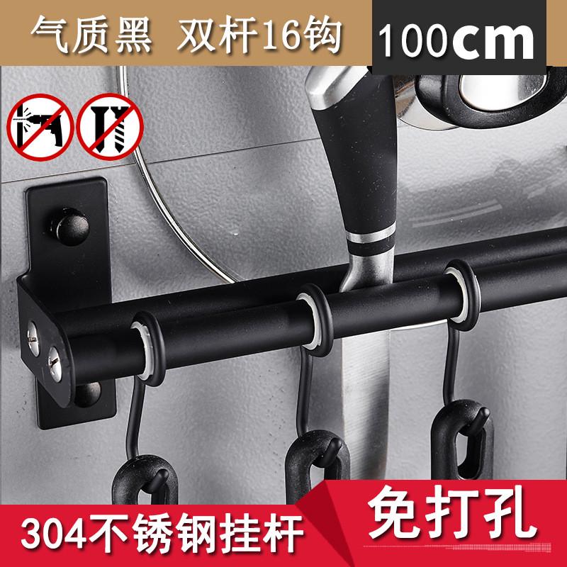 淘宝304挂钩黑色厨房置物架厨具五金厨卫不锈钢挂件挂架挂杆免打孔壁