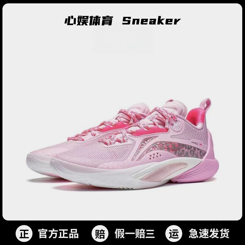 缘启1篮球鞋361男鞋运动鞋春季男实战耐磨训练粉色低帮球鞋