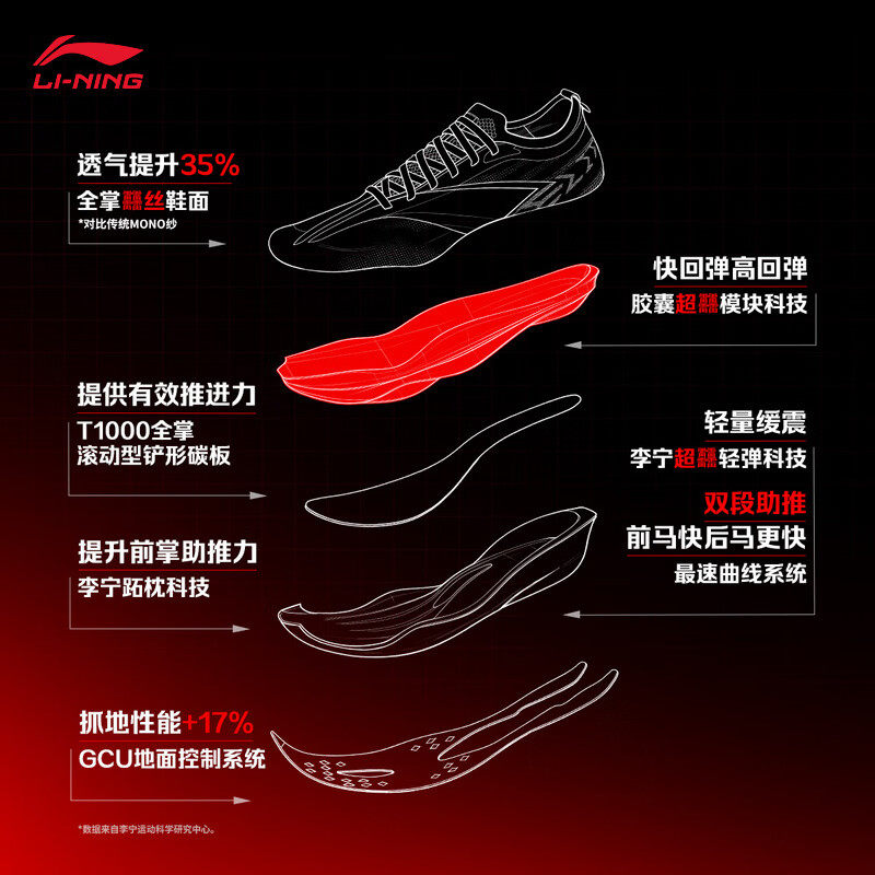 李宁飞电6ELITE是一款专为马拉松竞速与高强度训练打造的男女通用碳板跑鞋。搭载全新䨻轻弹科技与全掌异构碳板,提供强劲推进力与卓越能量回馈,助力跑者突破极限。鞋面采用透气MONO纱材质,轻盈贴合,增强足部包裹感。中底加厚设计兼顾缓震与稳定性,长距离奔跑亦能保持舒适。外底采用GCU耐磨橡胶,抓地力强,适应多种路面。整体重量极轻,响应迅速,是精英跑者与进阶爱好者冲击PB的理想之选。飞电6ELITE以科技赋能速度,重新定义竞速跑鞋性能标准。