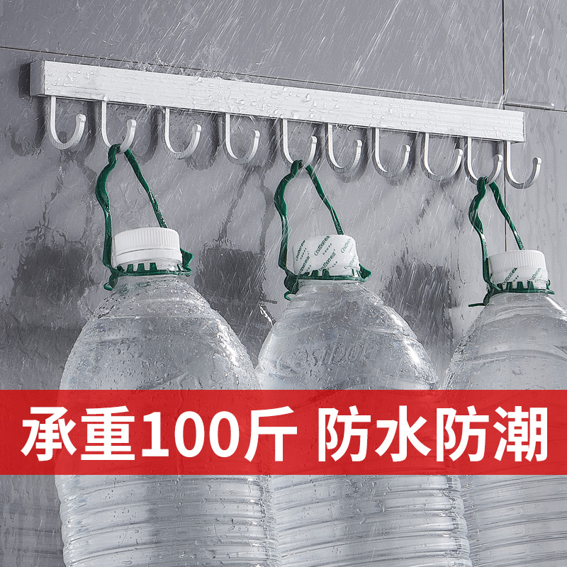 淘免打孔厨房太空铝挂钩壁挂收纳架衣钩排钩厨卫挂件锅铲钩毛巾挂架